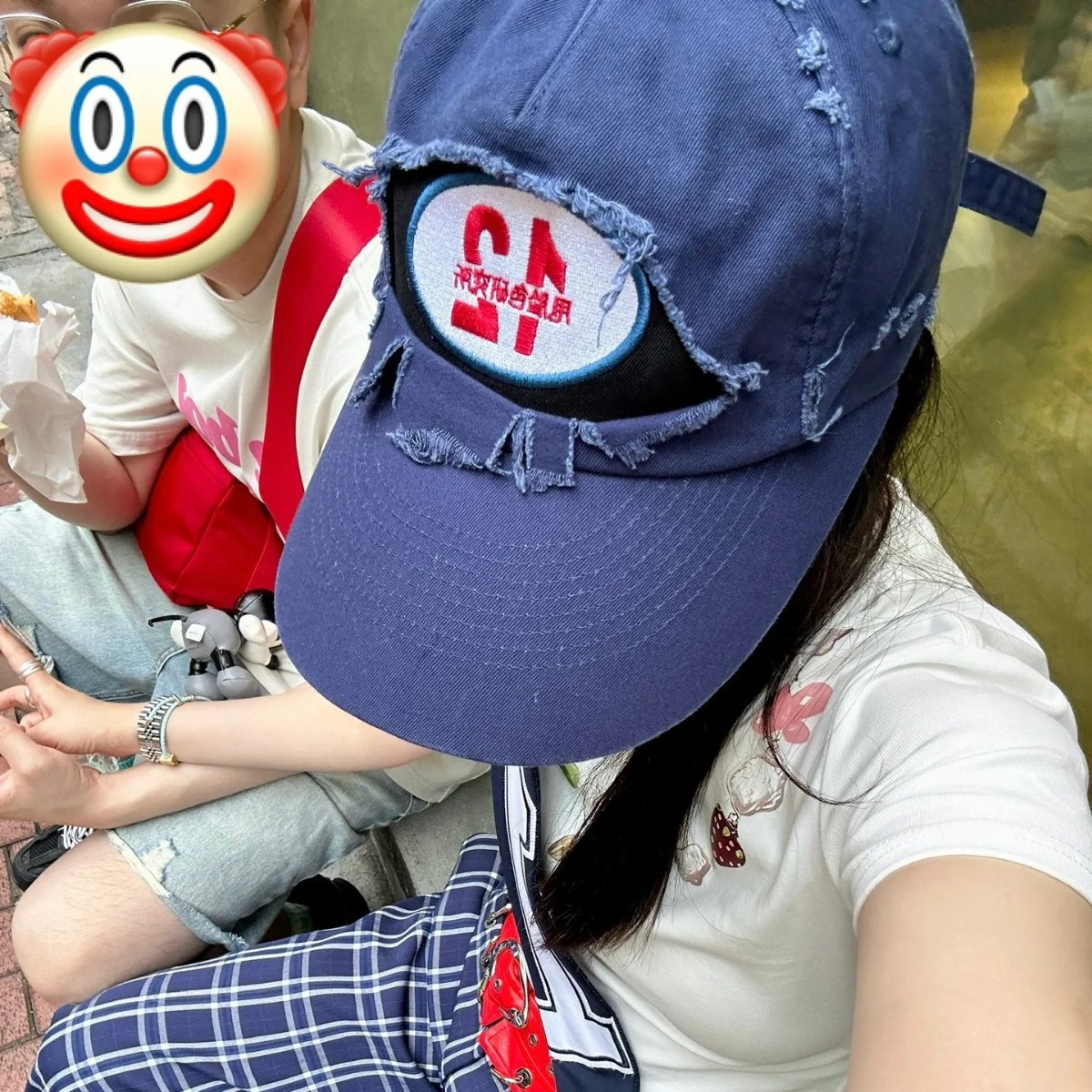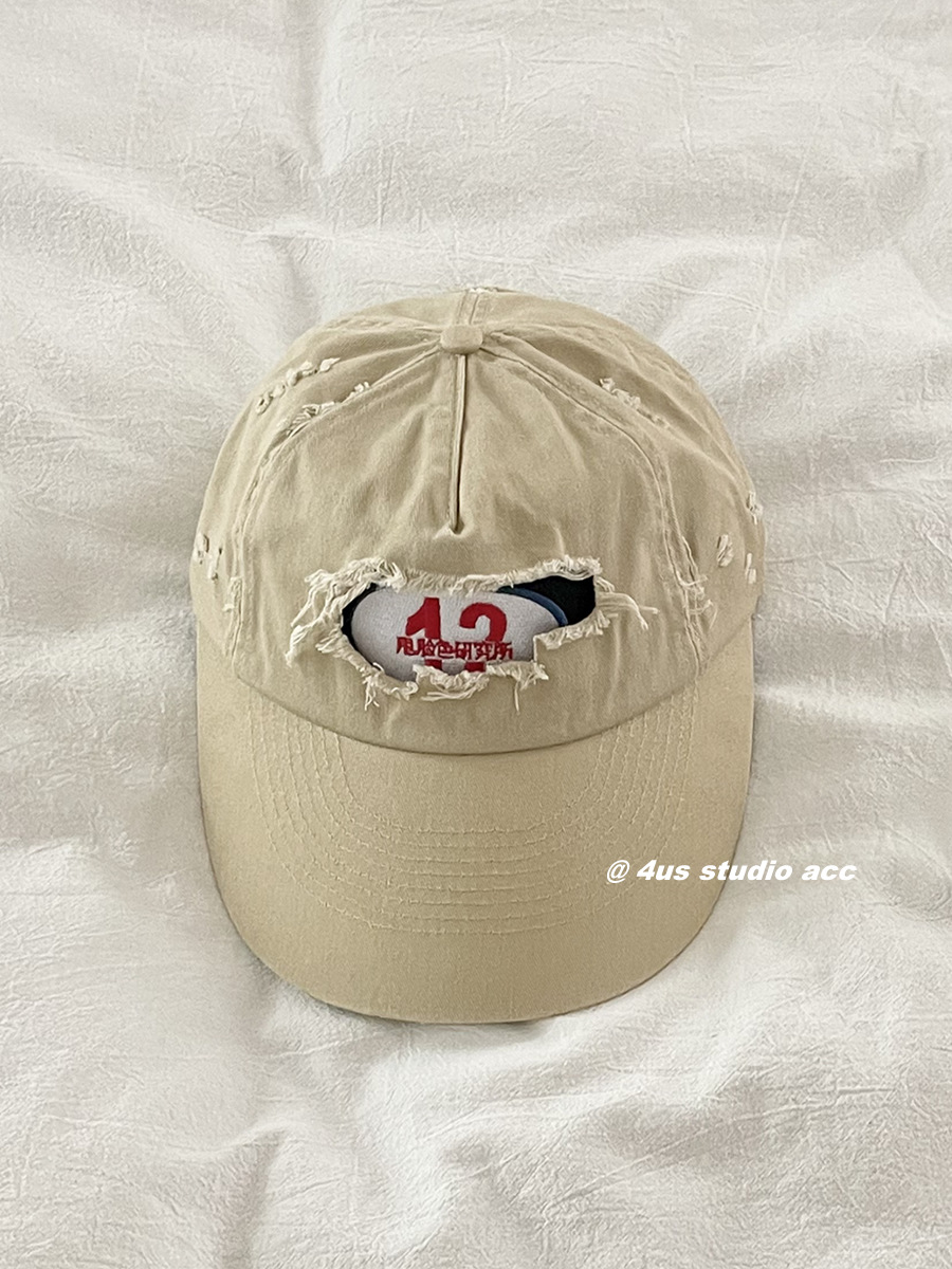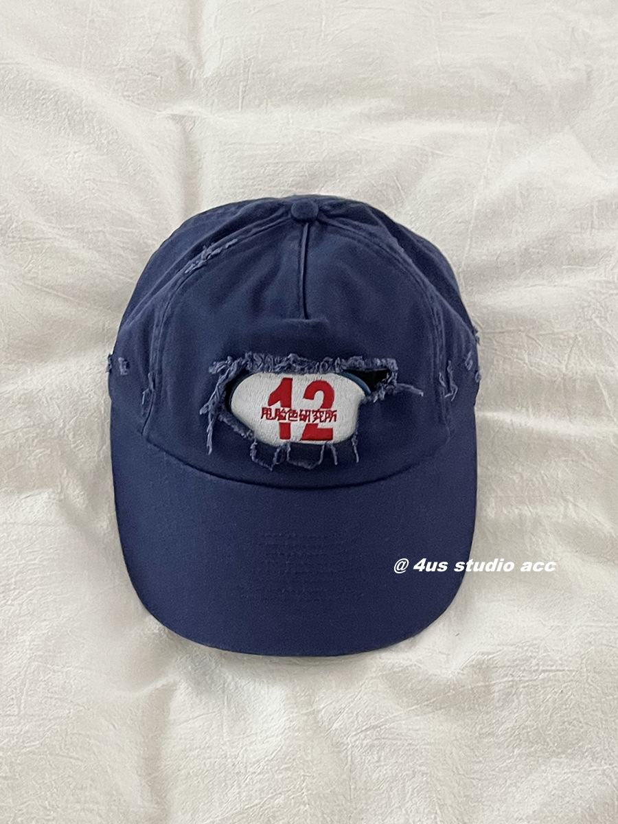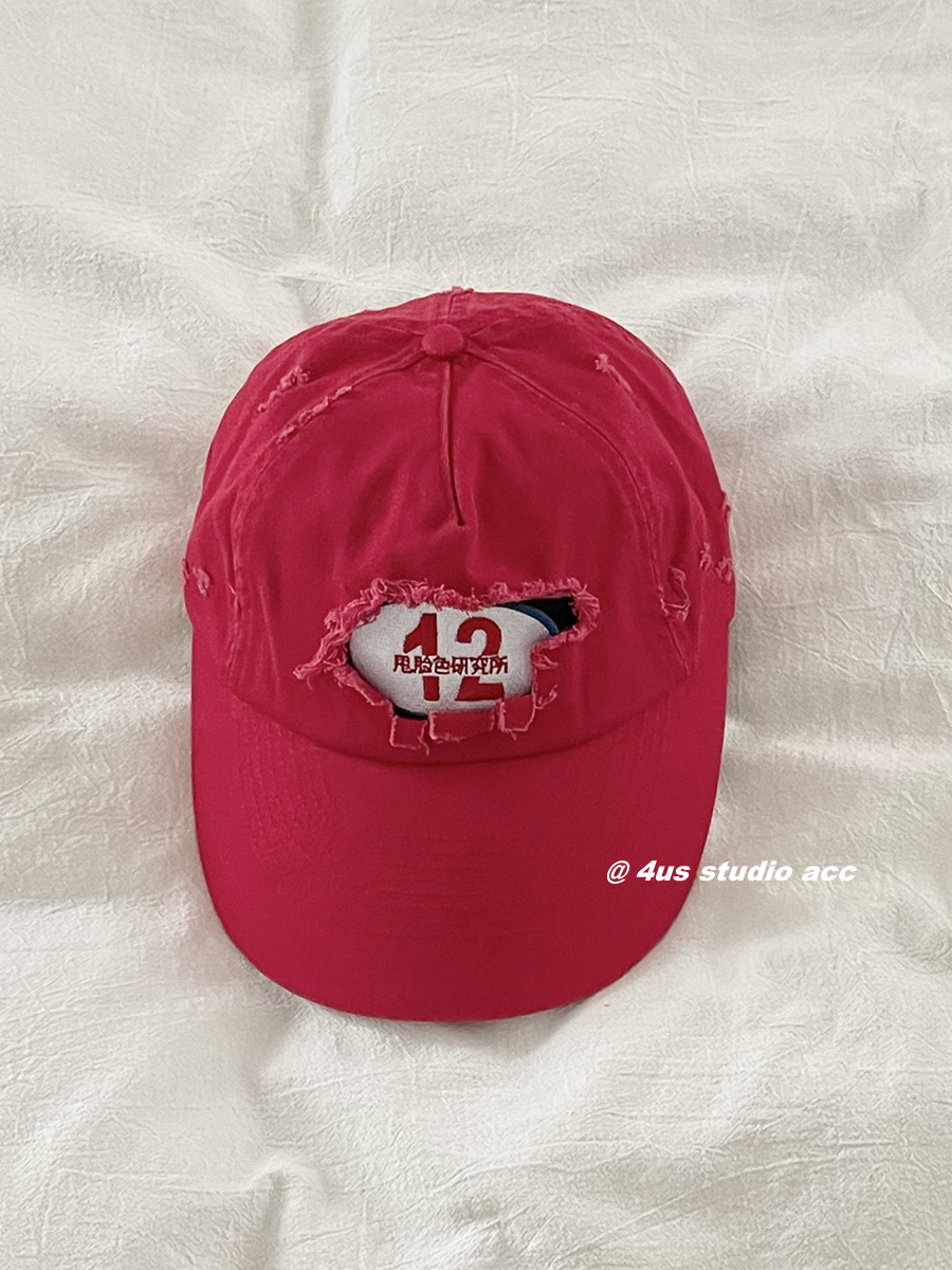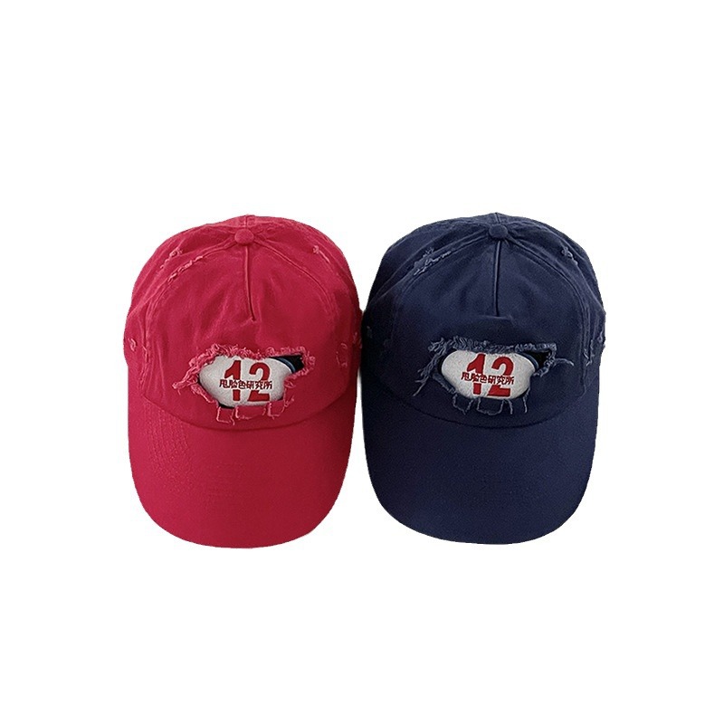 小众街头潮牌棒球帽女加宽加大鸭舌帽显脸小个性做旧破洞帽子男潮