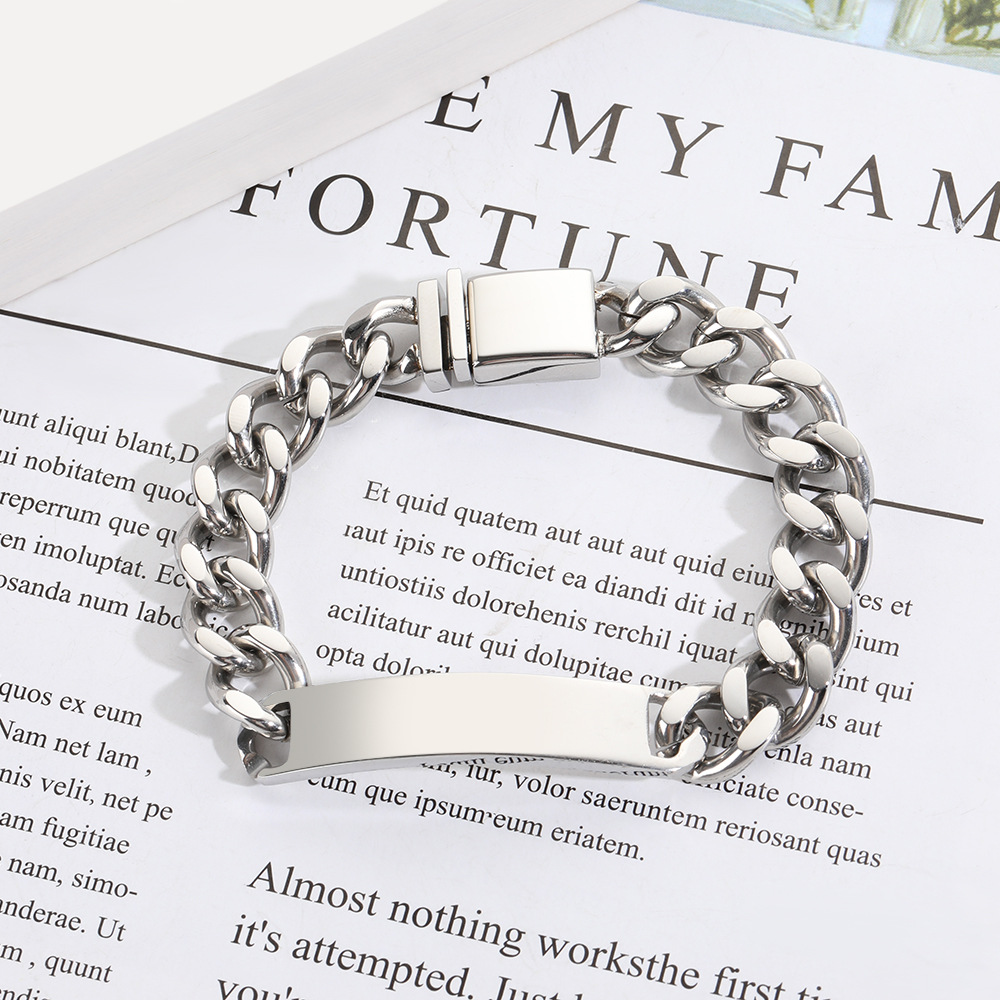 不锈钢情侣手链男款嘻哈设计感光面弯牌钛钢古巴手链