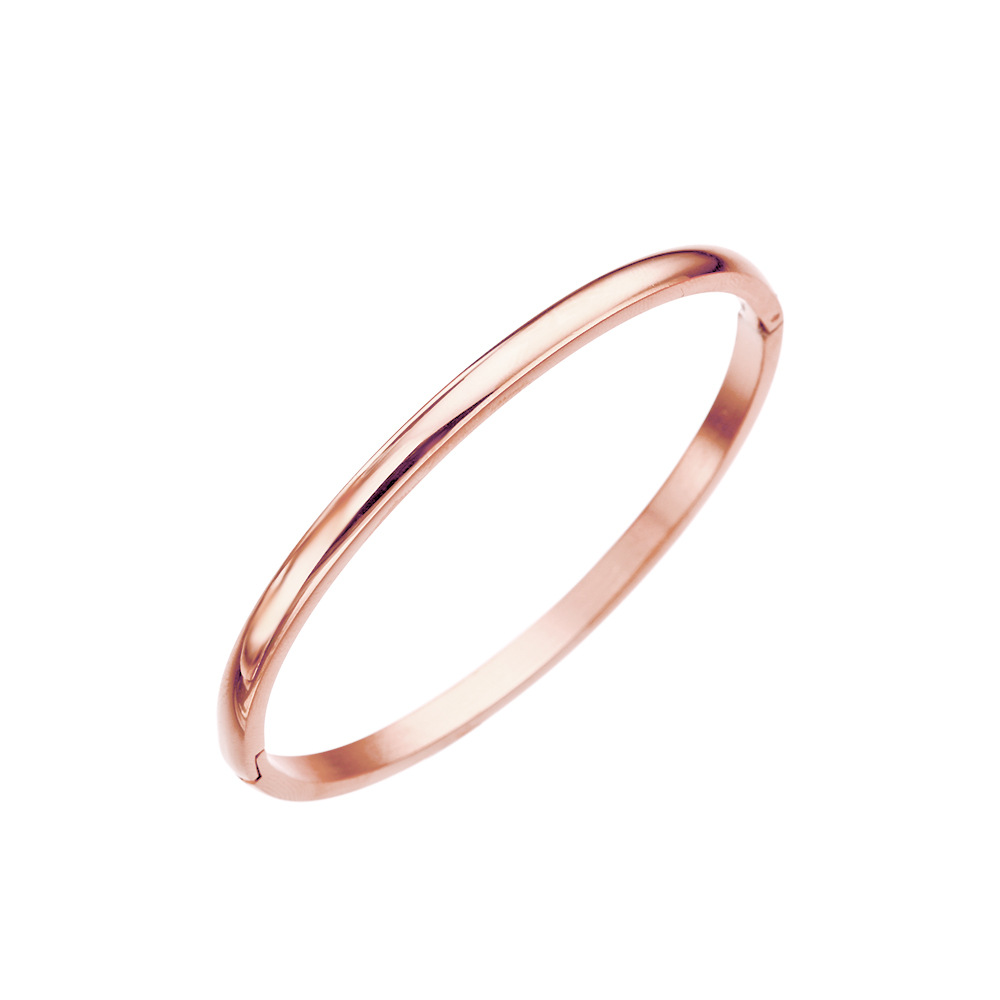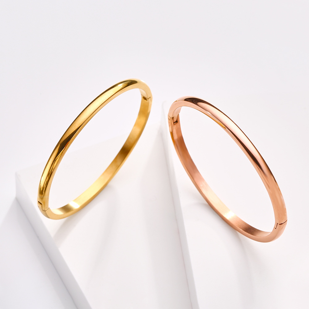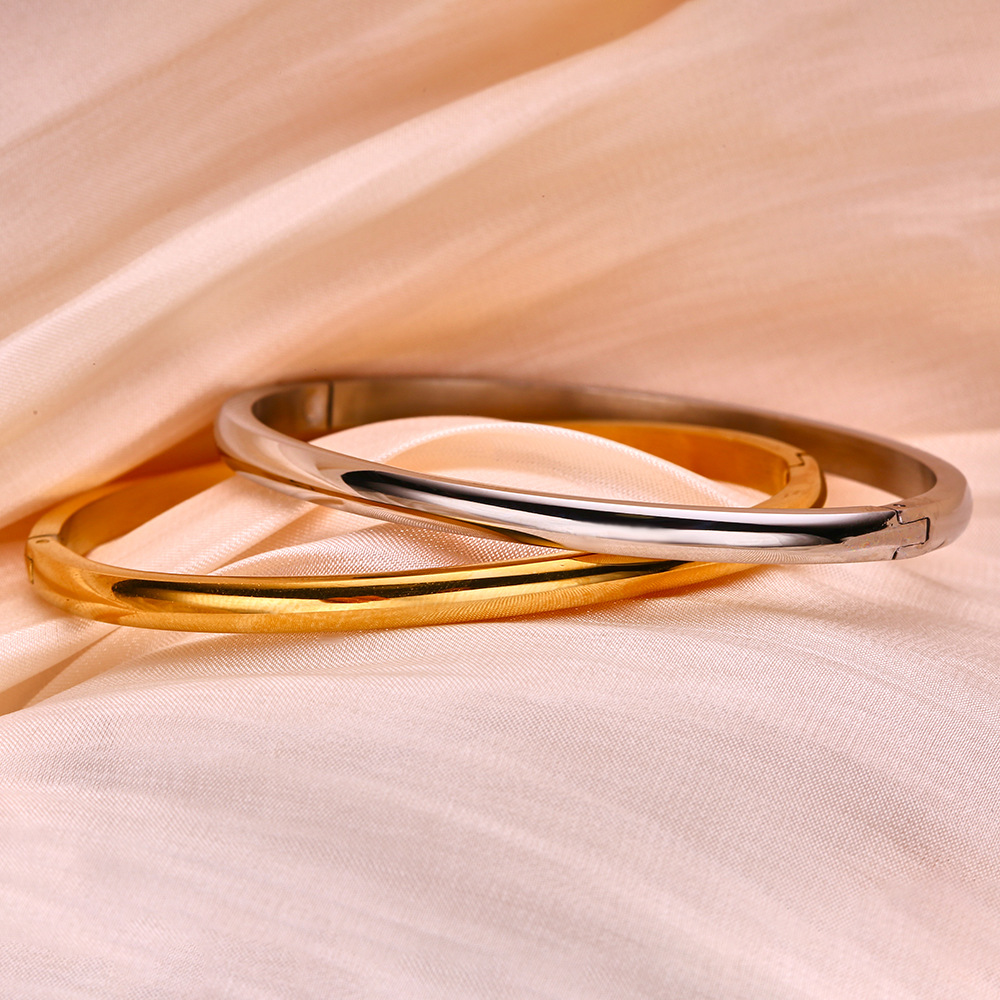 潮流饰品 简约时尚素圈手环女 不锈钢光面弧形卡扣手镯