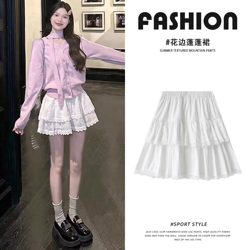 白色蕾丝花边短裙女夏2025新款高腰显瘦a字裙蓬蓬蛋糕裙半身裙子