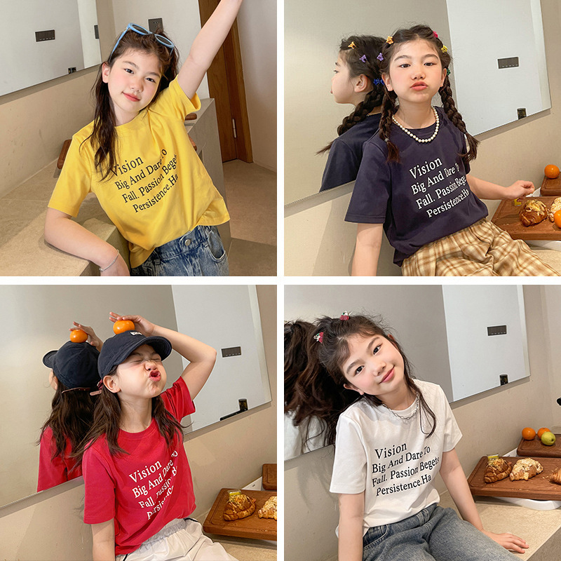 女童短袖纯棉洋气儿童t恤女童夏季宽松前后印花半袖上衣童装潮