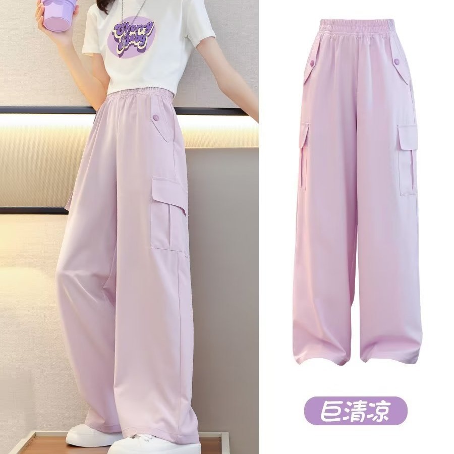 新款女童炸街工装裤春季中大童休闲街舞运动百搭宽松紧腰长裤