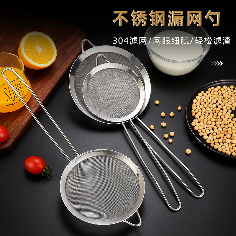304不锈钢手持面粉筛辅食烘焙工具糖粉筛过滤网筛子漏油勺网漏勺