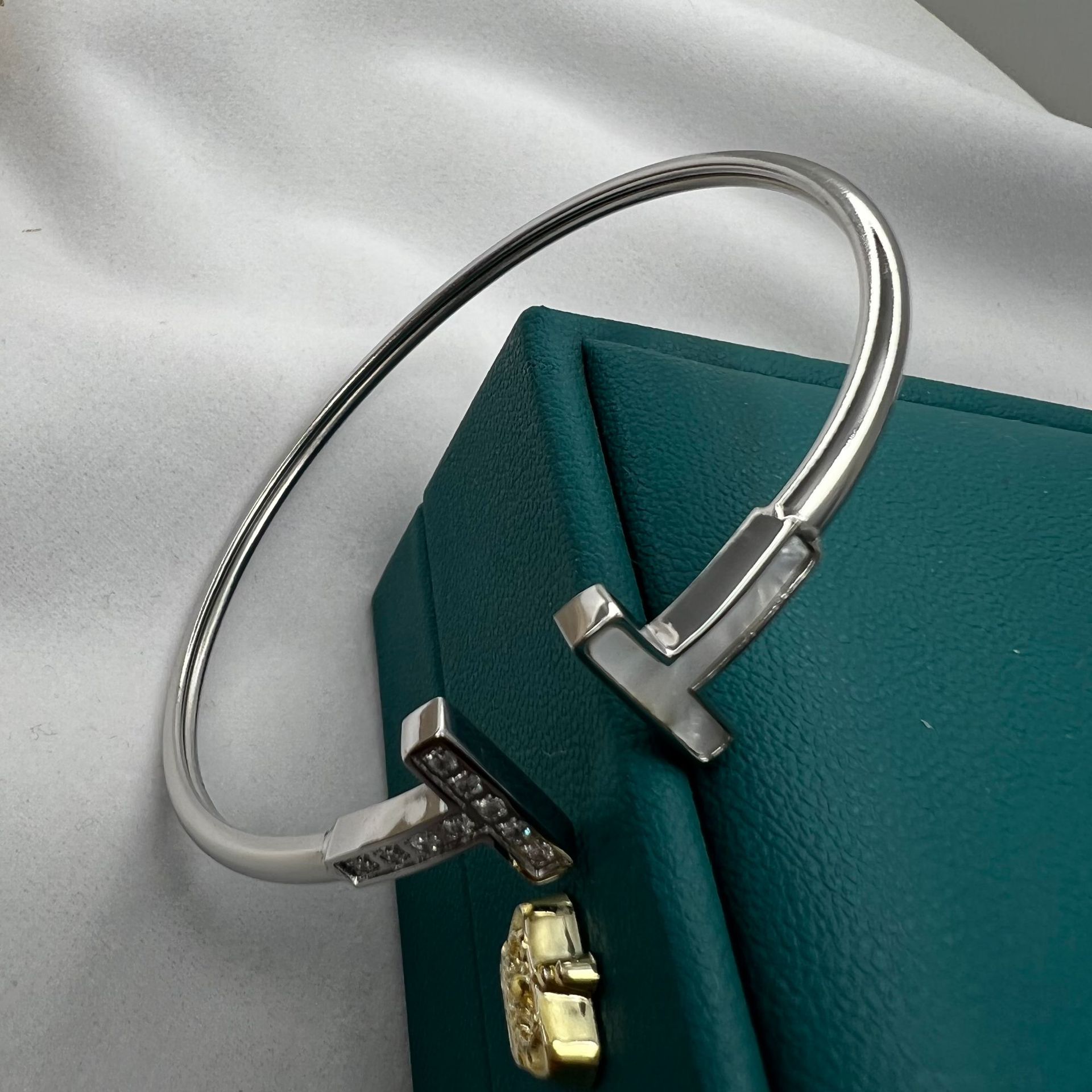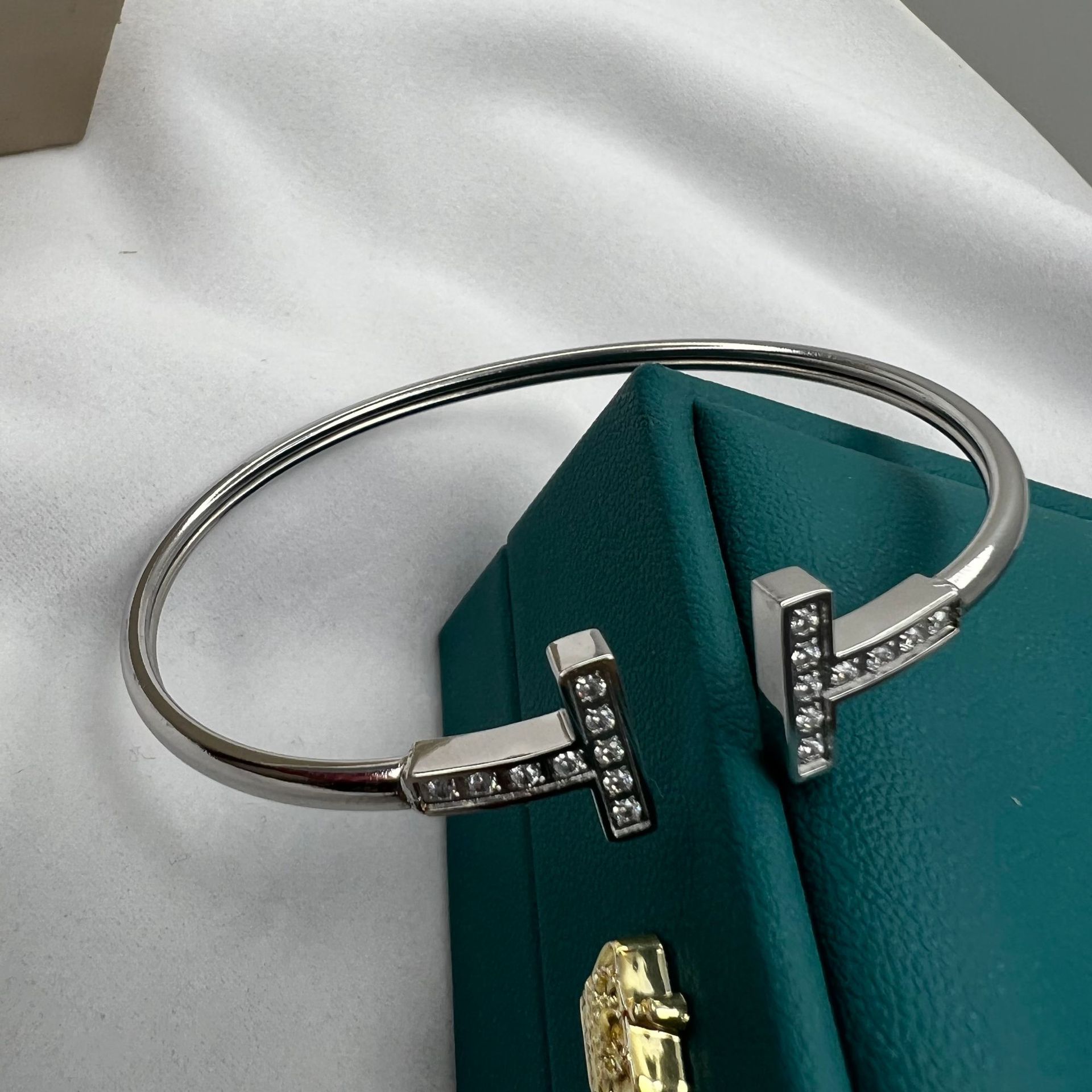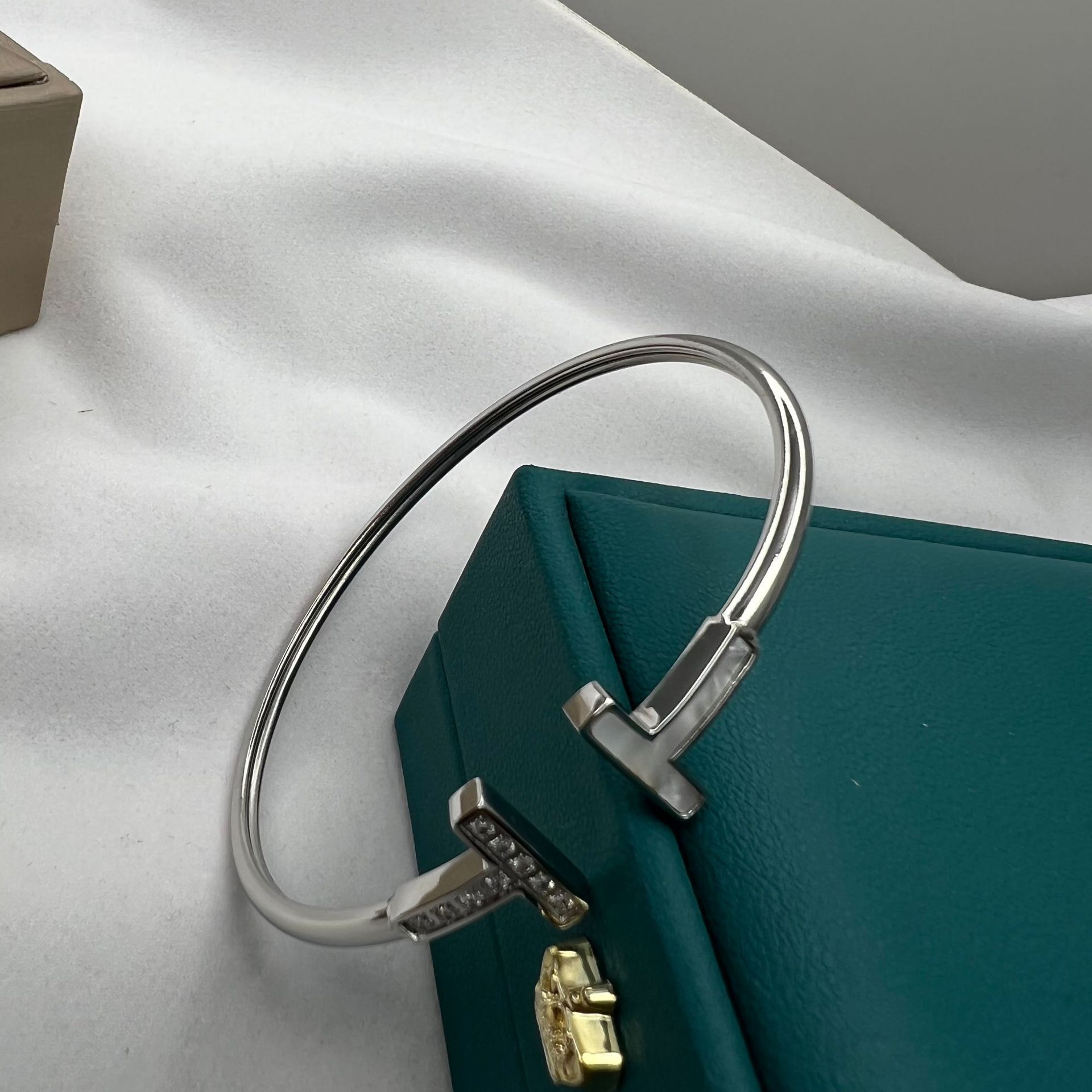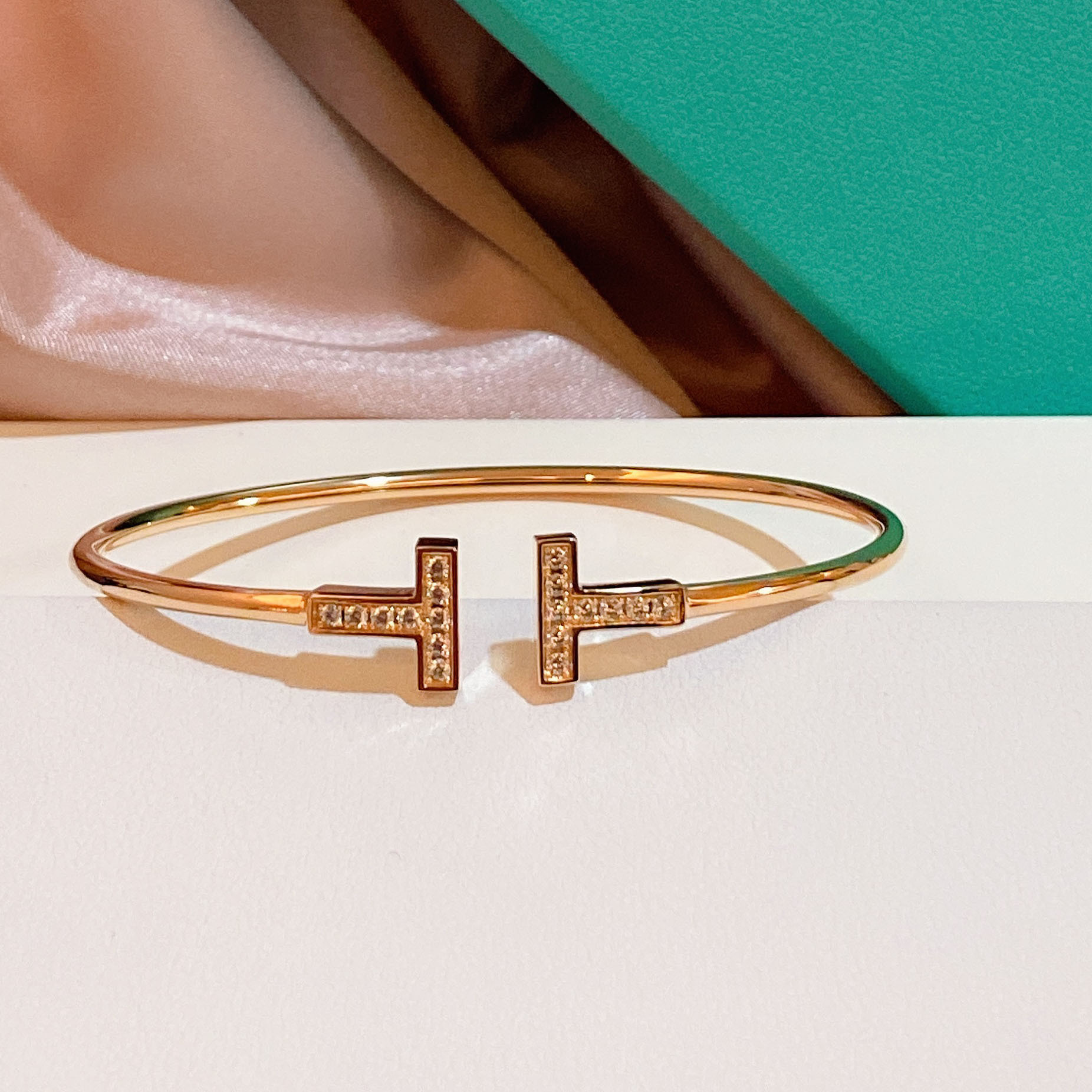 T家提夫尼双T双开口软管通体钛钢手镯18K手镯蒂芬尼同款H手环饰品