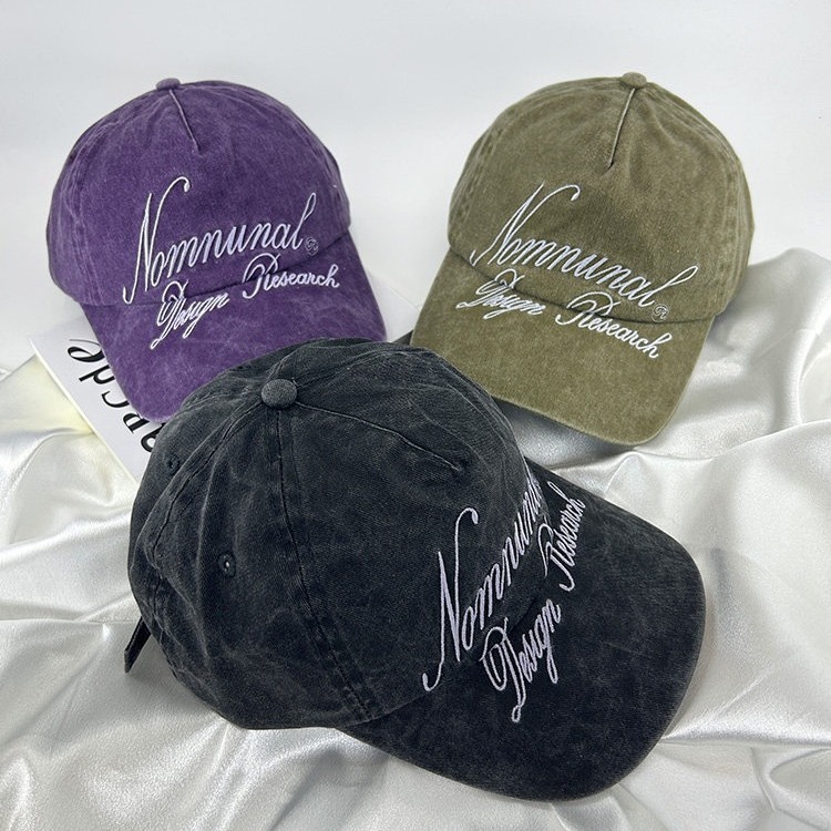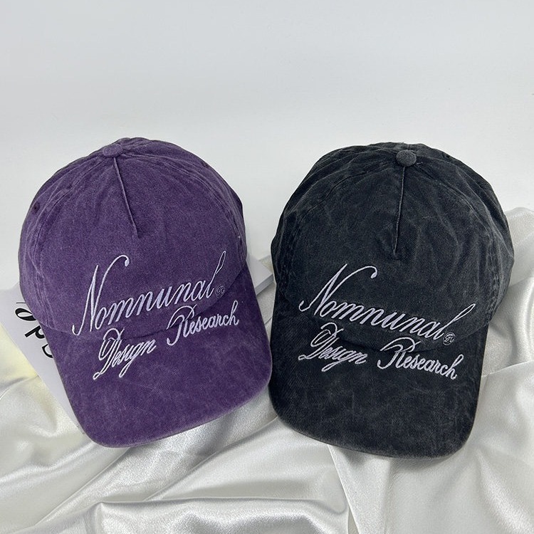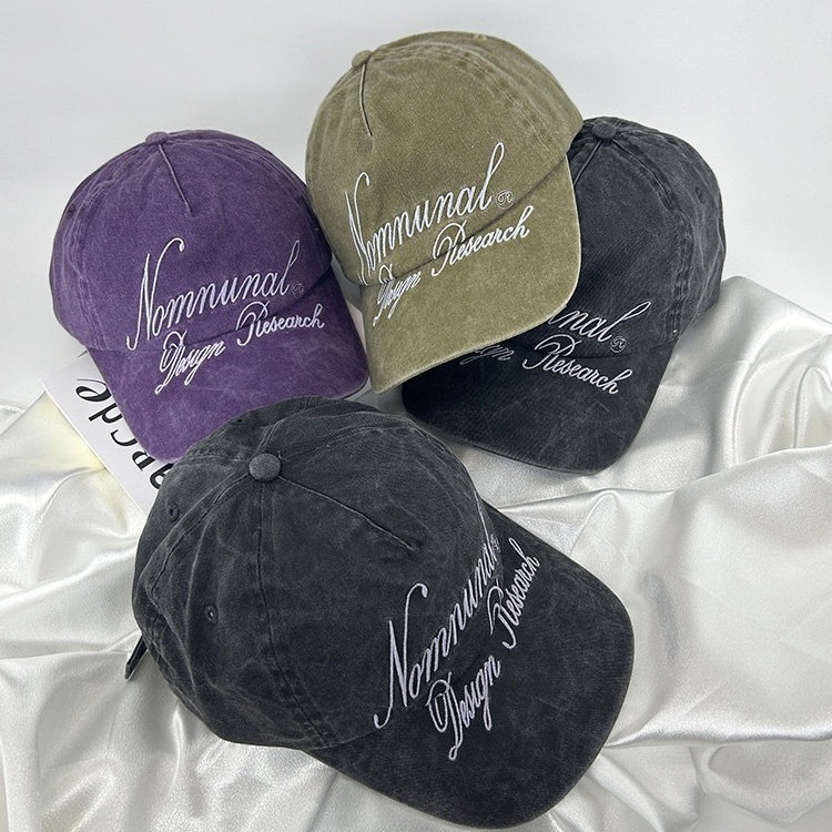韩国小众街头潮牌水洗做旧刺绣字母鸭舌帽女情侣软顶大头围棒球帽