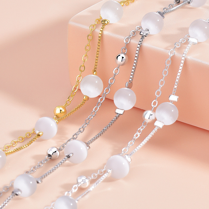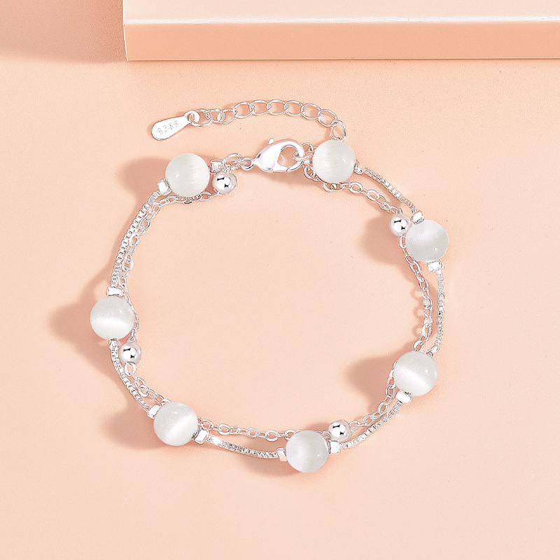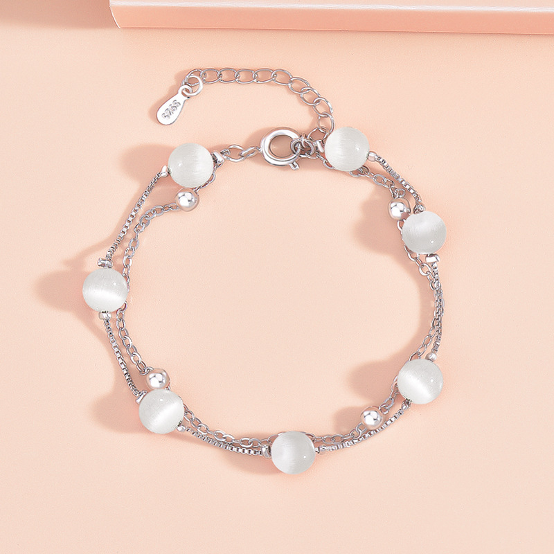 猫眼石圆珠手链女学生个性时尚百搭双层手饰网红直播饰品