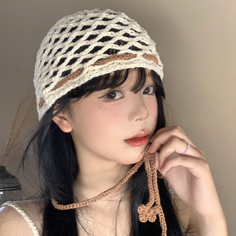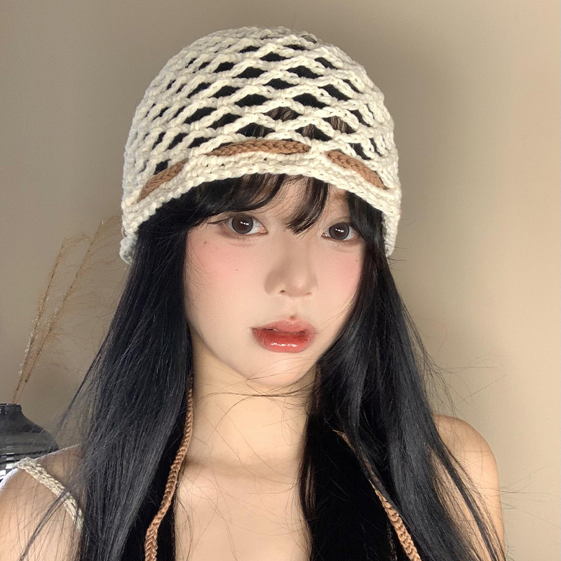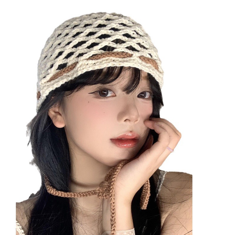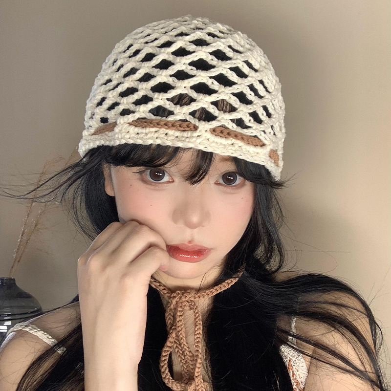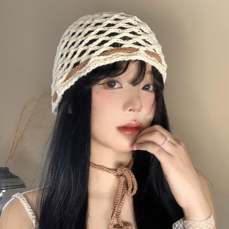 镂空流苏针织帽女夏季百搭显脸小编织包头帽复古手工钩针毛线帽子