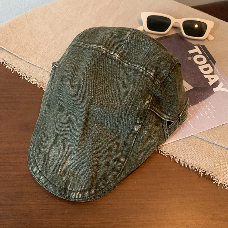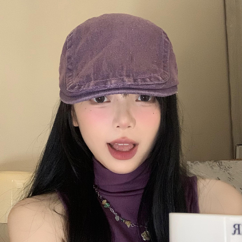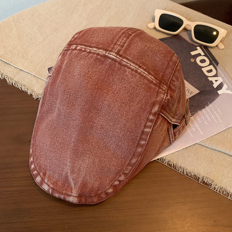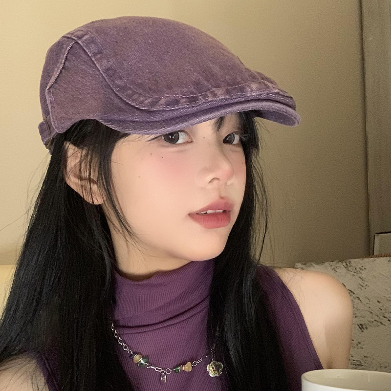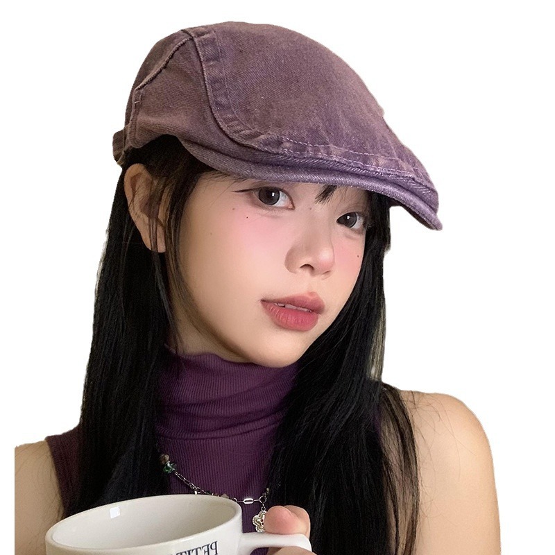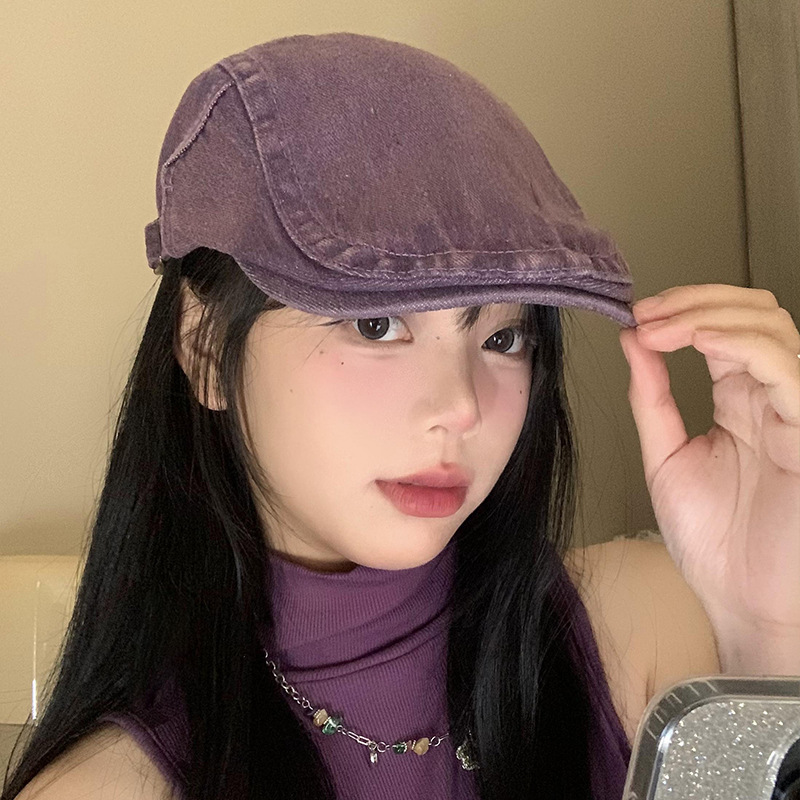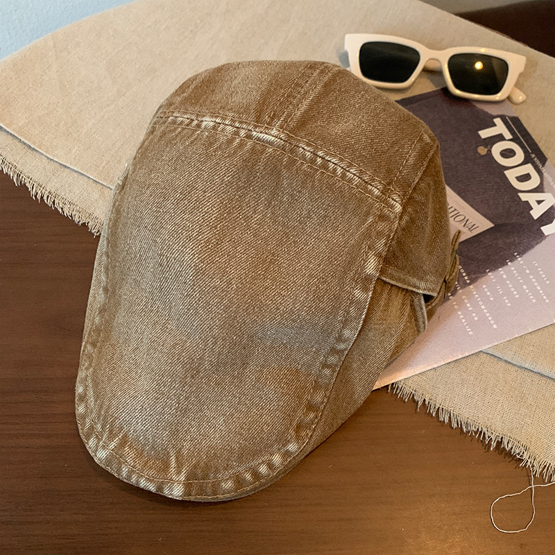 日系文艺复古牛仔前进帽女韩版春夏季时尚百搭鸭嘴帽贝雷帽显脸小