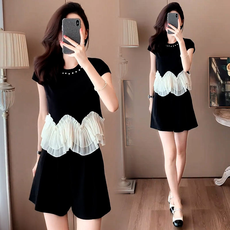 小香风时尚运动服套装女士夏装新款小个子短袖短裤拼接两件套