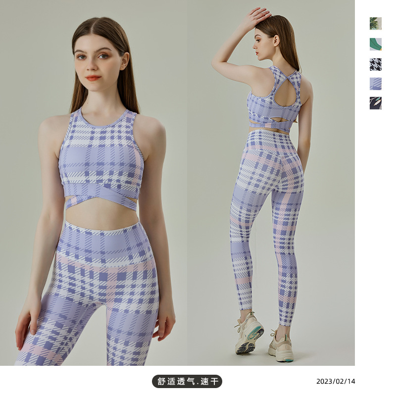 春夏新款国风印花瑜伽服套装女带胸垫上衣高强度lulu健身两件套