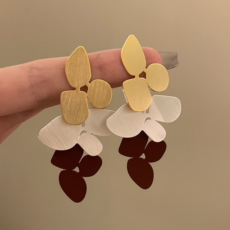 银针拉丝不规则撞色耳环简约个性冷淡风耳坠轻奢复古耳饰
