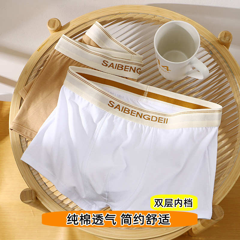 正品内裤男士纯棉透气纯色简约四角裤头青少年男生舒适运动平角裤