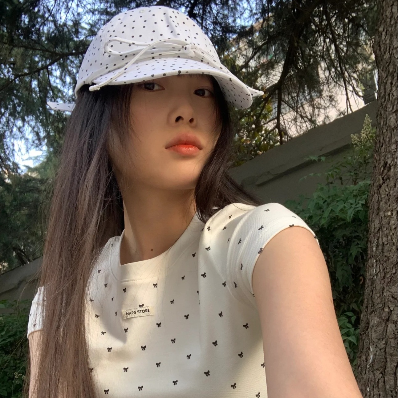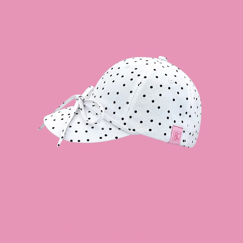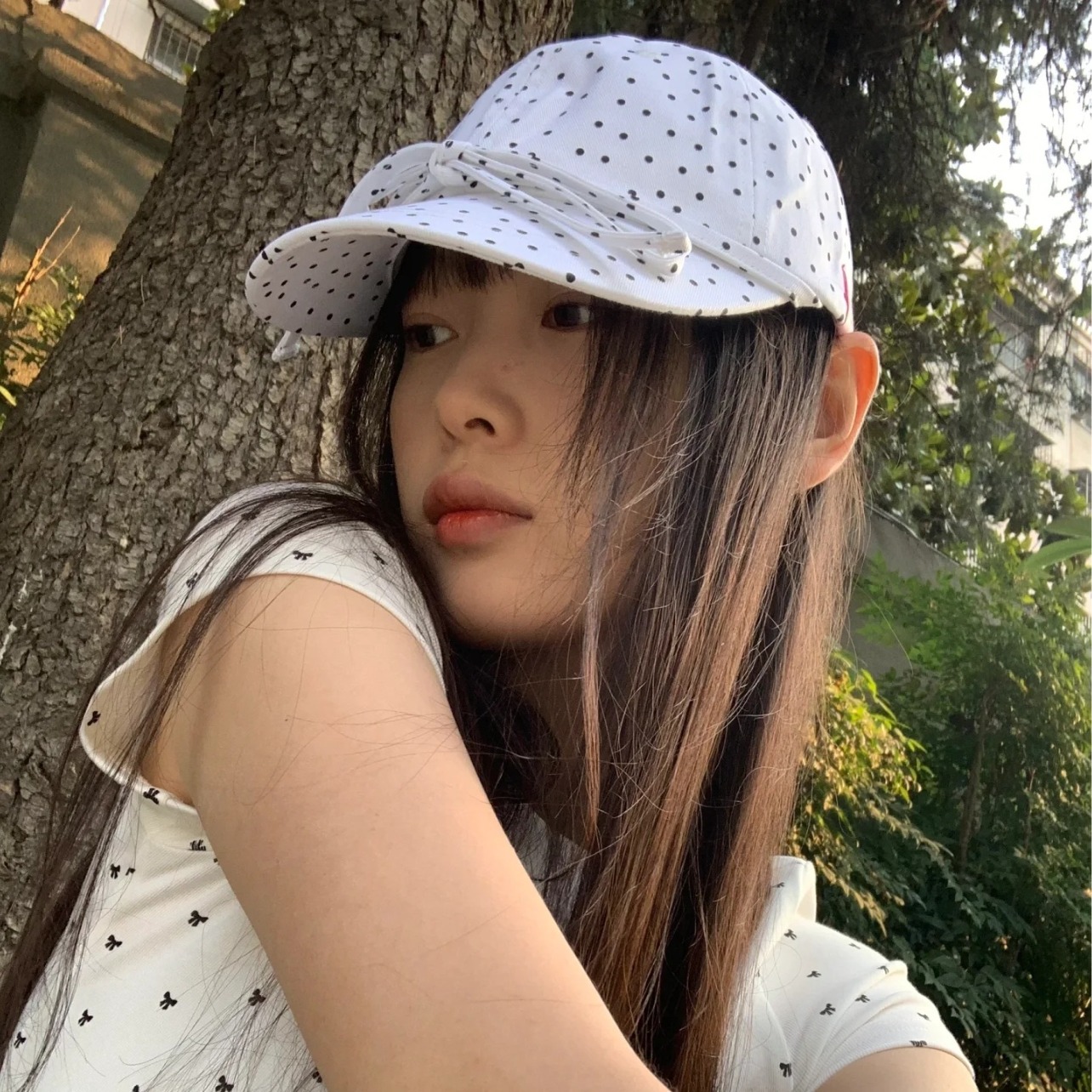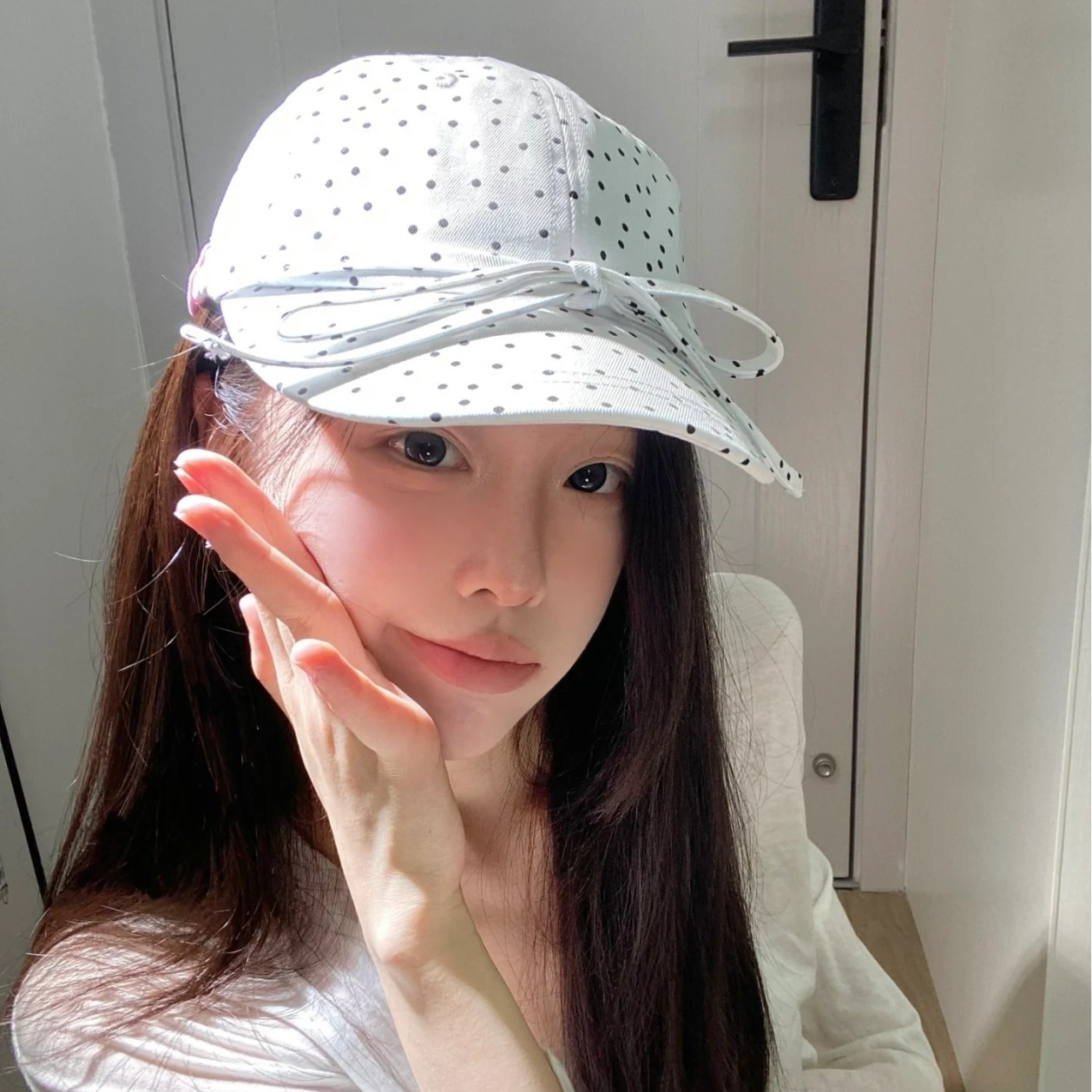 黑白波点蝴蝶结春夏可调节棒球帽女显瘦显脸小遮阳防晒鸭舌帽子潮