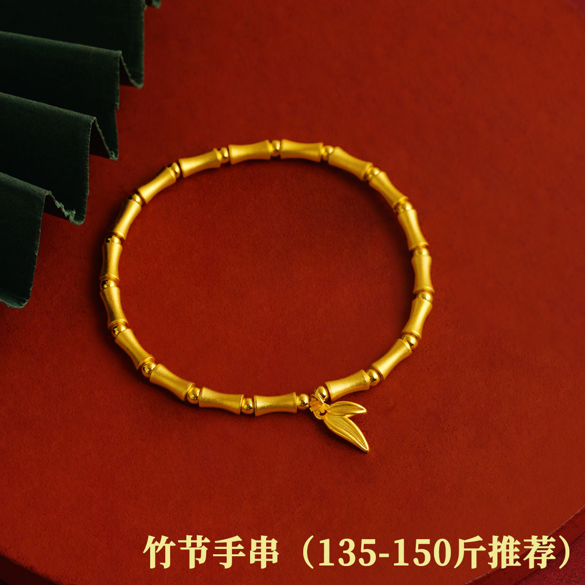 沙金国潮新中式竹节手链饰品女生高级感百搭情侣手串珠仿黄金爆款