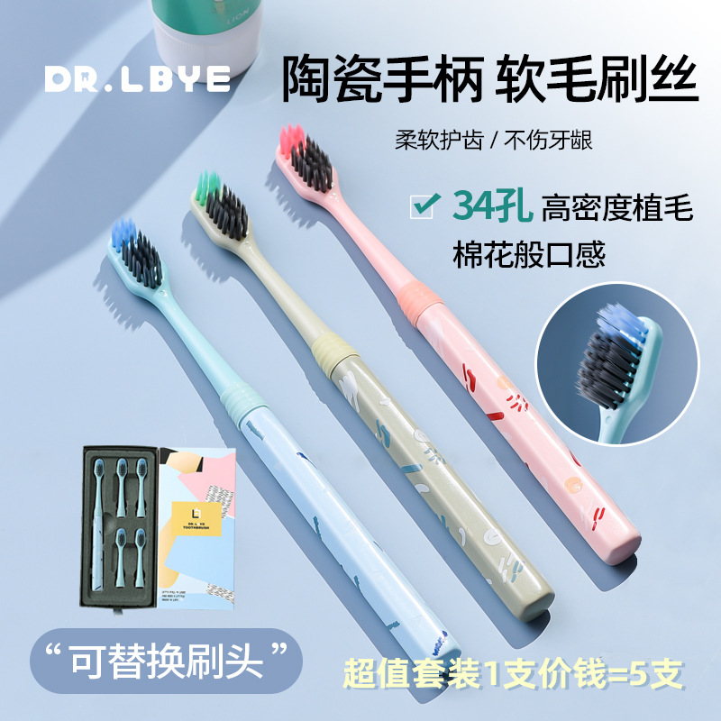 新款陶瓷印花柄成人牙刷替换刷头软毛牙刷小头超细软孕妇月子适用