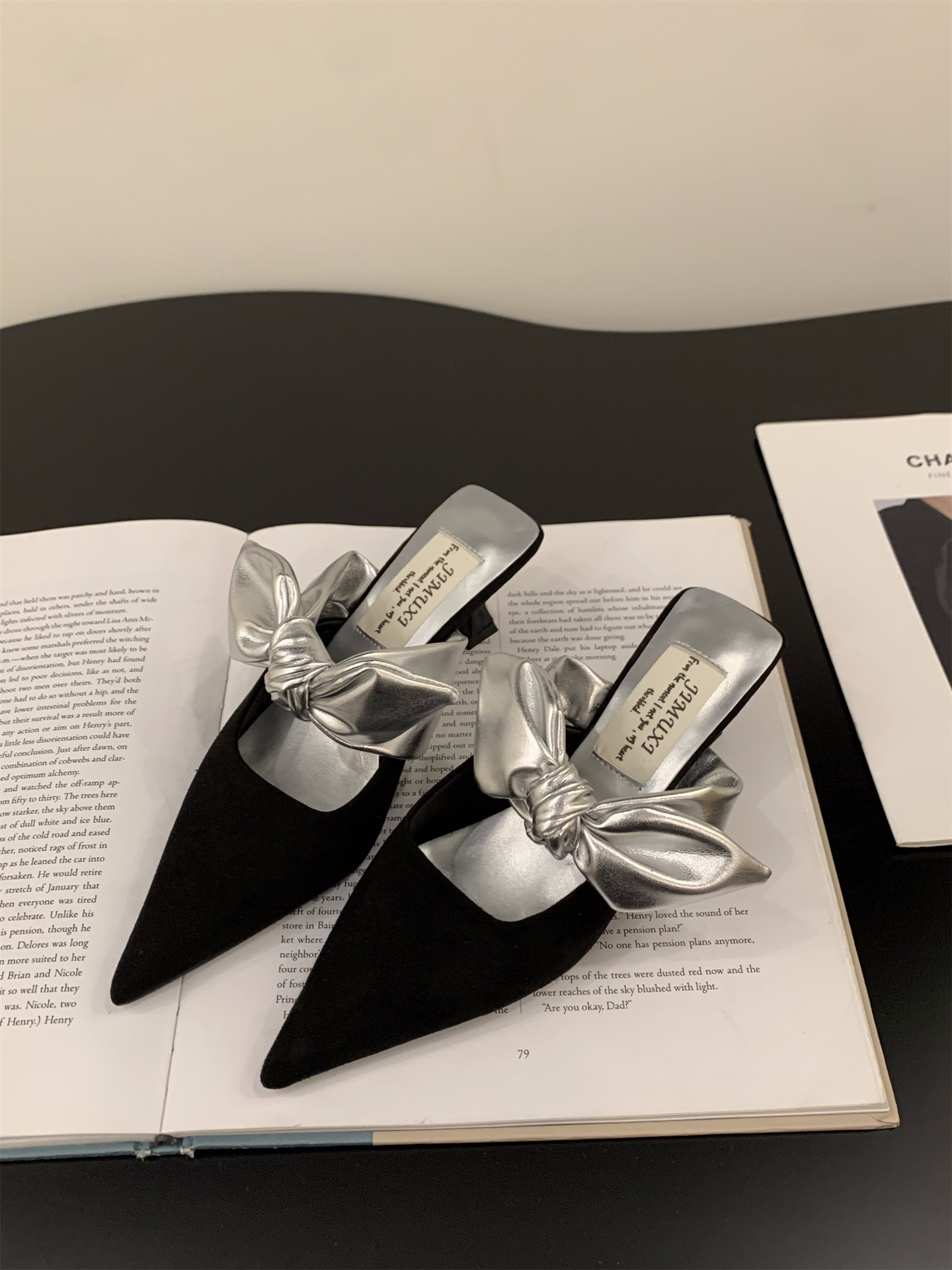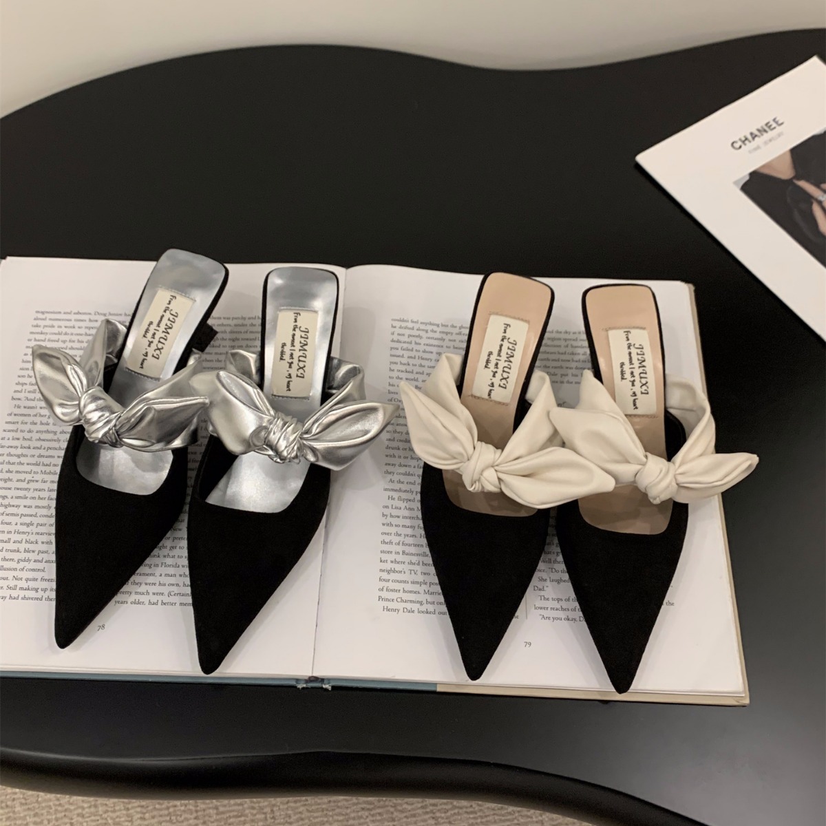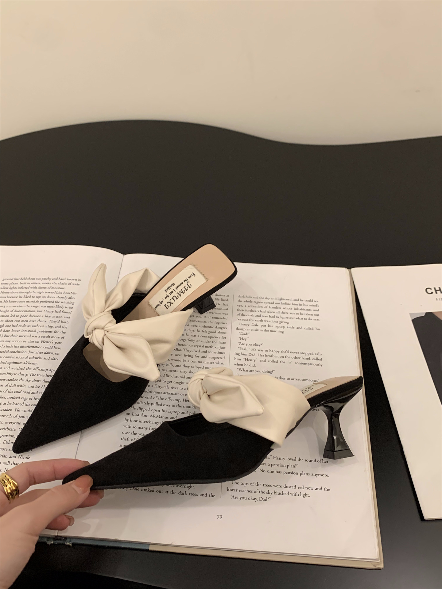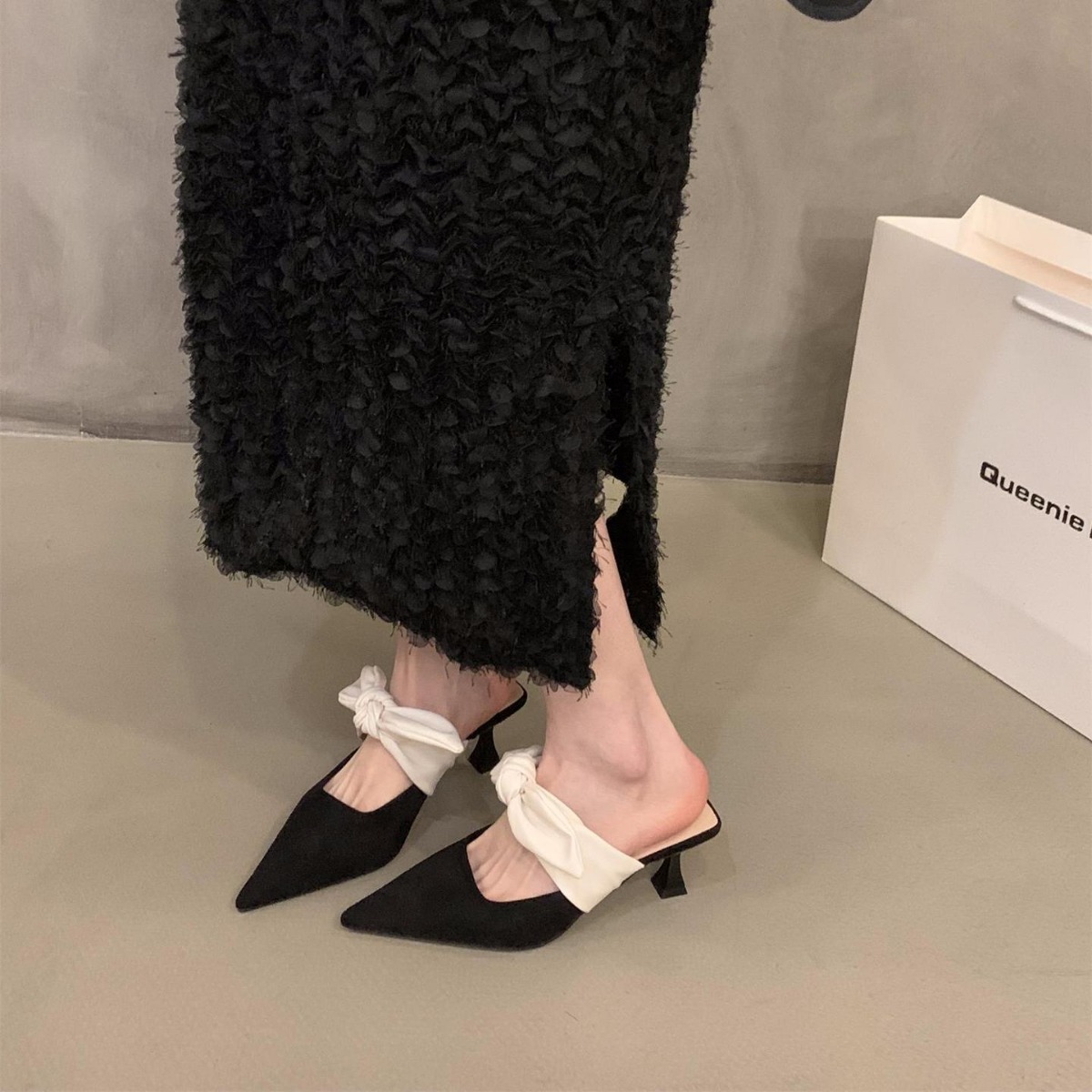法式小香风包头半拖鞋仙女鞋子外穿新款春夏季蝴蝶结高跟凉拖