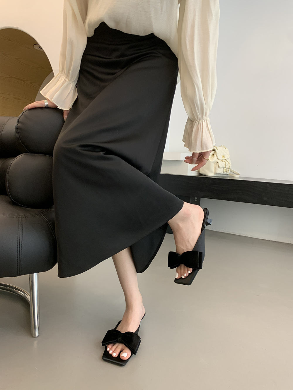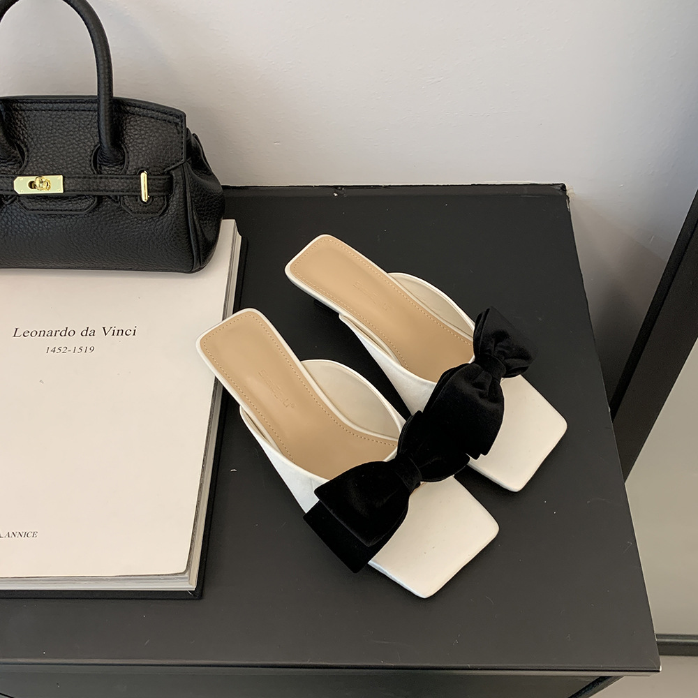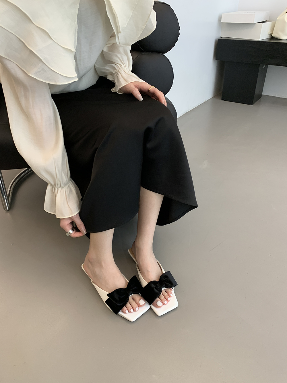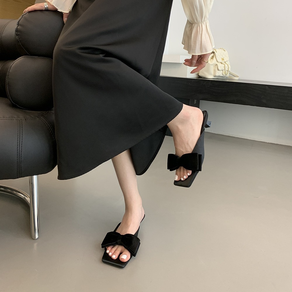 银色蝴蝶结拖鞋女夏季外穿时尚网红配裙子平底凉拖鞋一字带潮