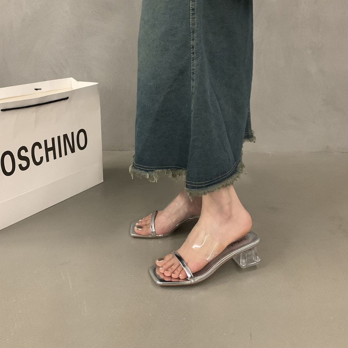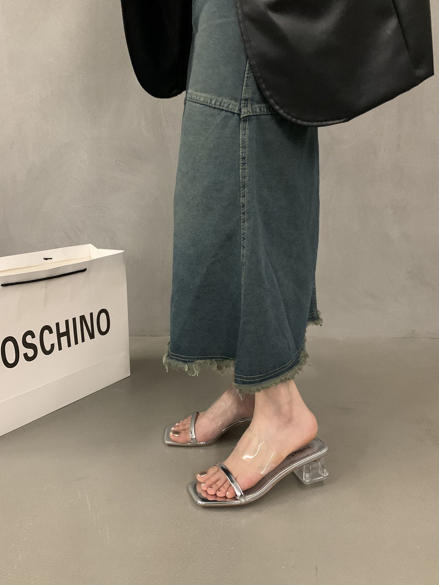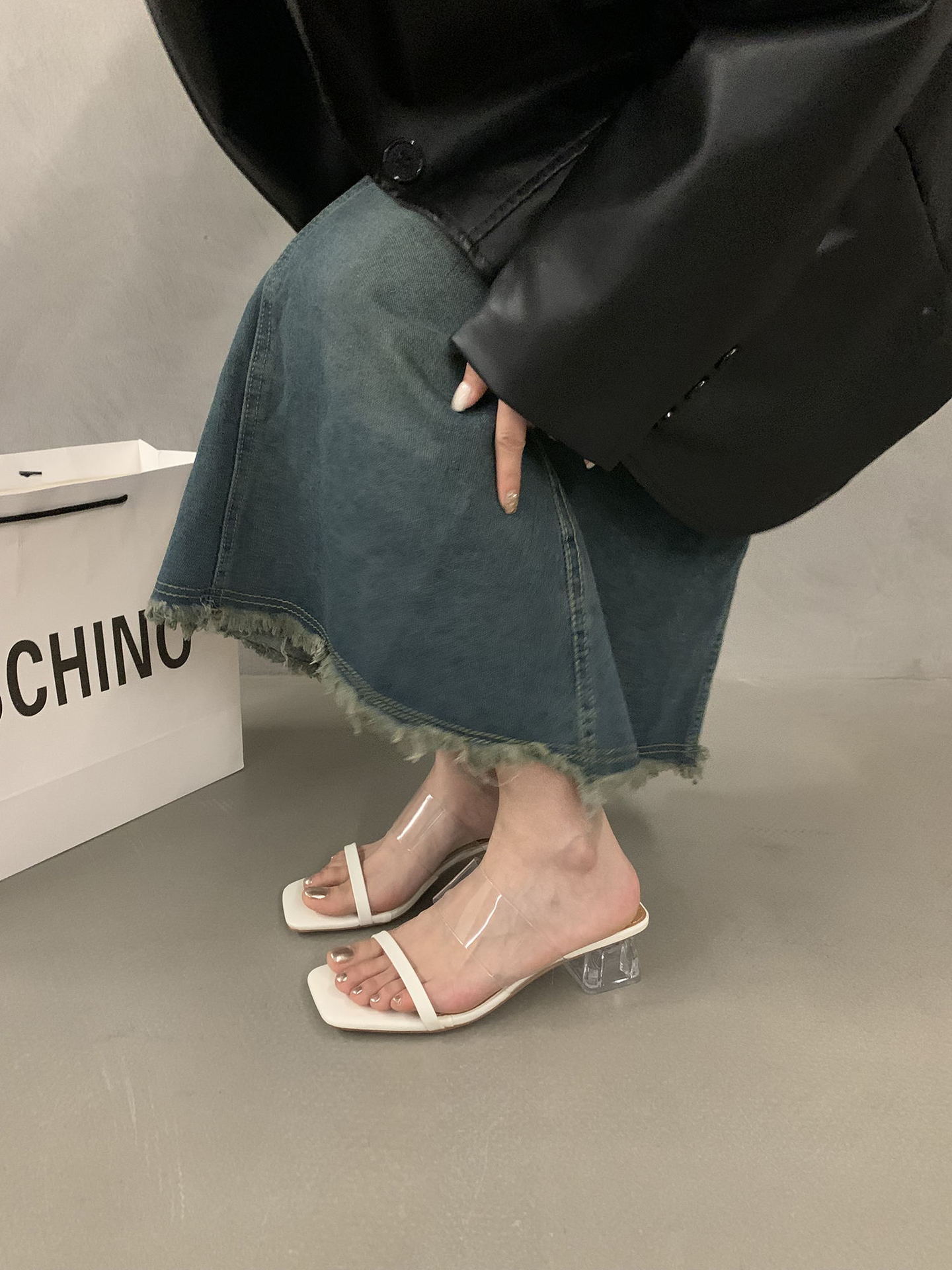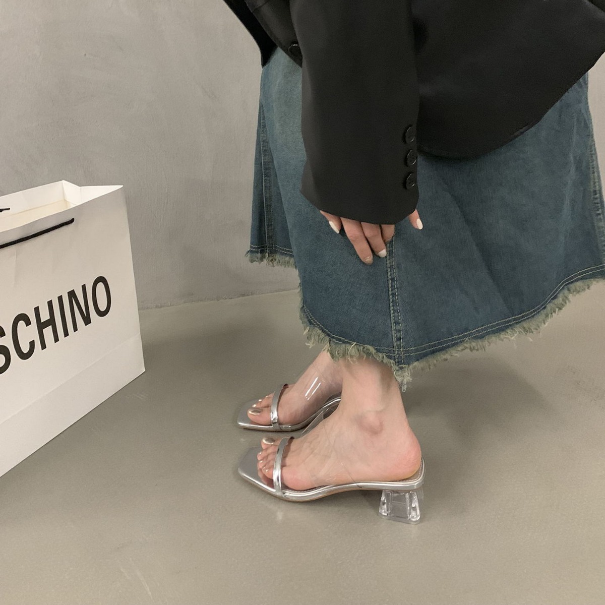 法式透明凉拖高跟一字拖鞋仙女鞋子外穿年夏季设计感晚风凉鞋