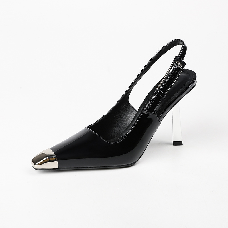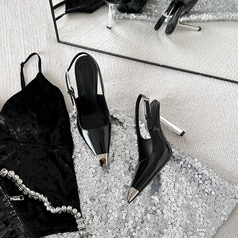 夏季高级感时装气质大码法式浅口黑色细跟高跟鞋凉鞋
