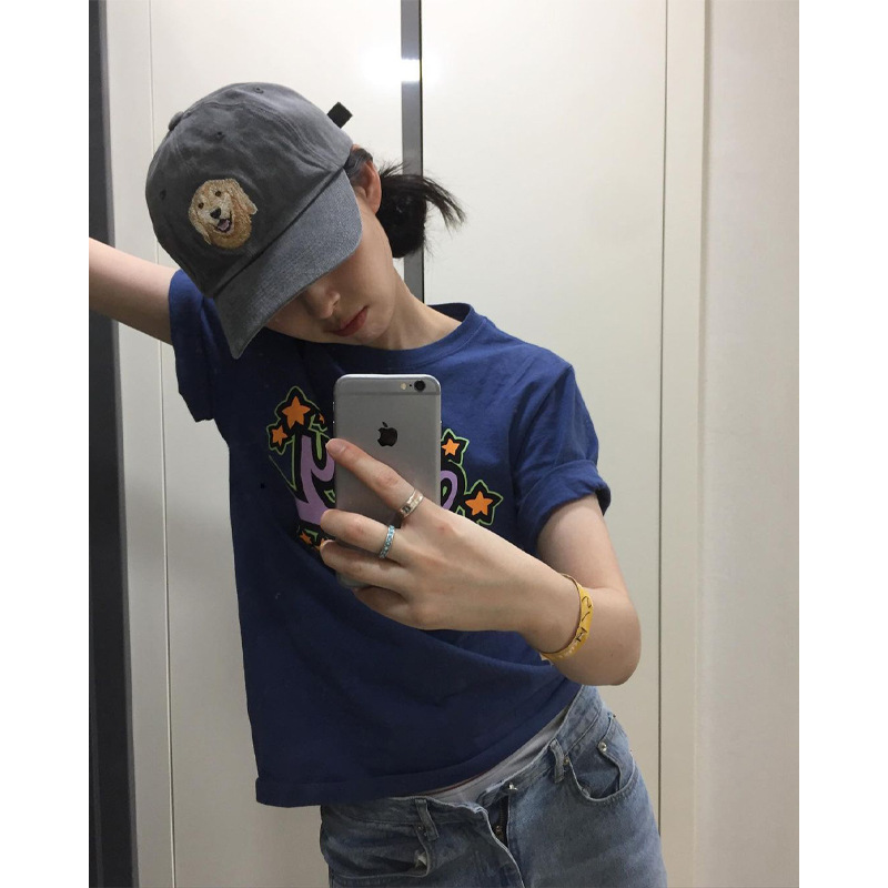 ins博主同款潮牌金毛狗狗图案刺绣棒球帽可调节百搭水洗鸭舌帽子
