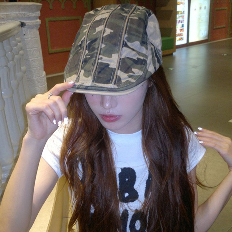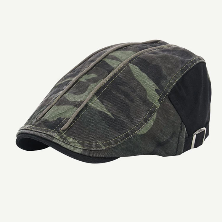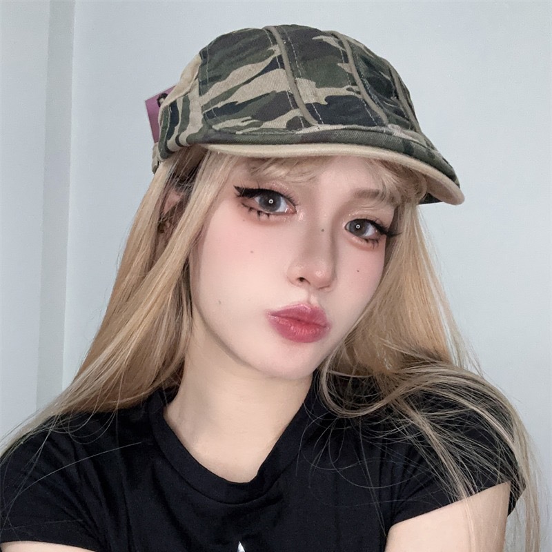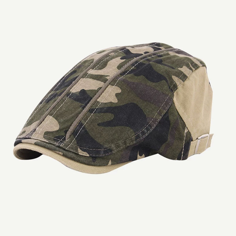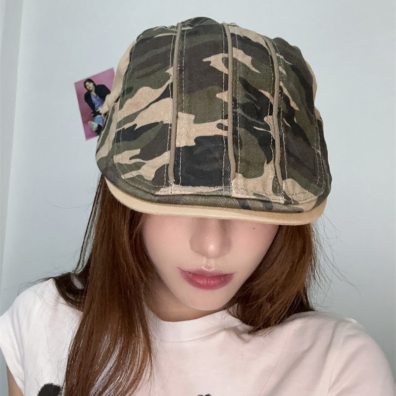 复古迷彩拼接鸭舌帽新款美式八角帽女报童帽鸭嘴前进帽夏