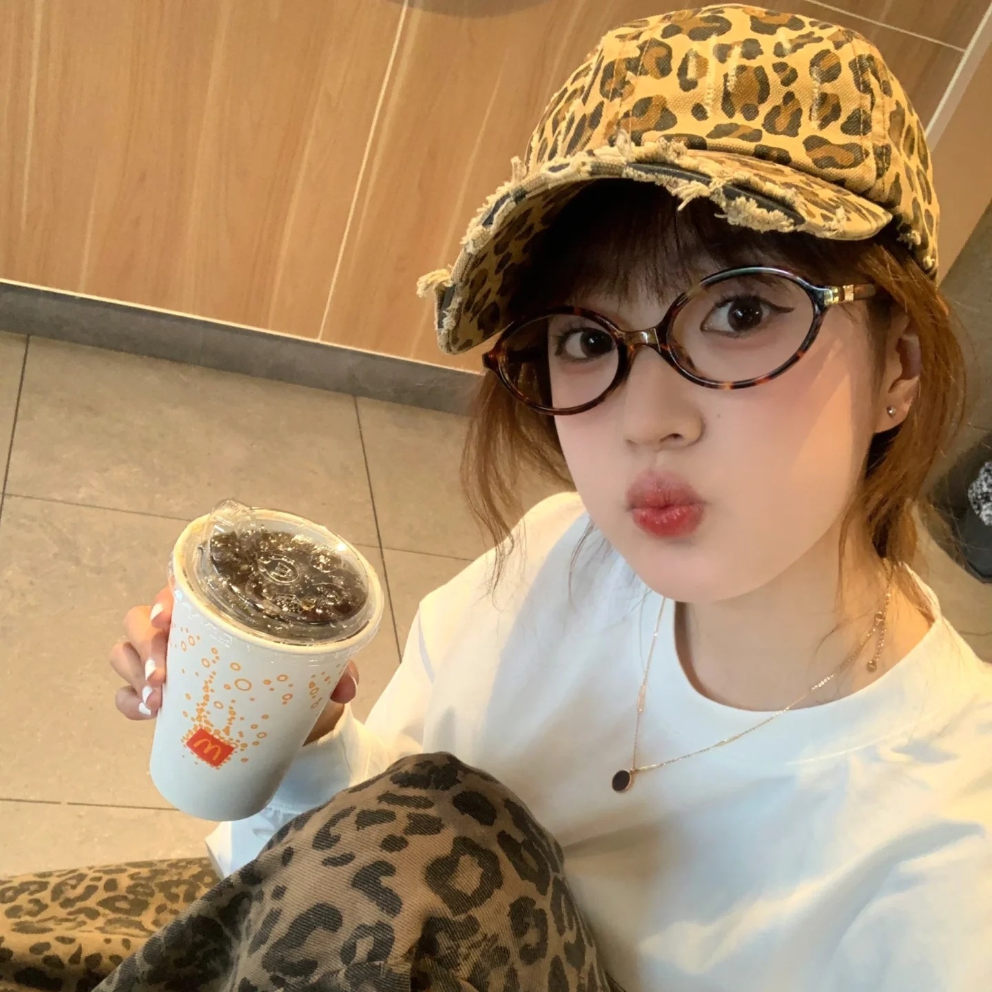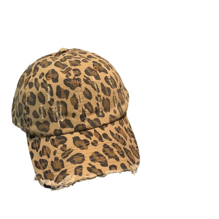 y2k磨毛软顶复古做旧豹纹棒球帽子女韩版百搭显脸小休闲鸭舌帽男