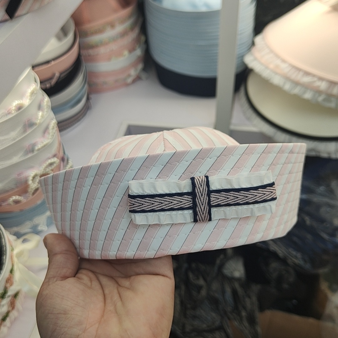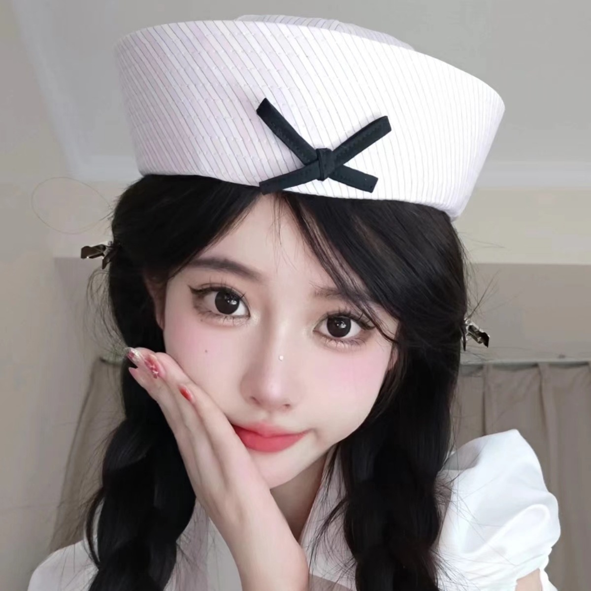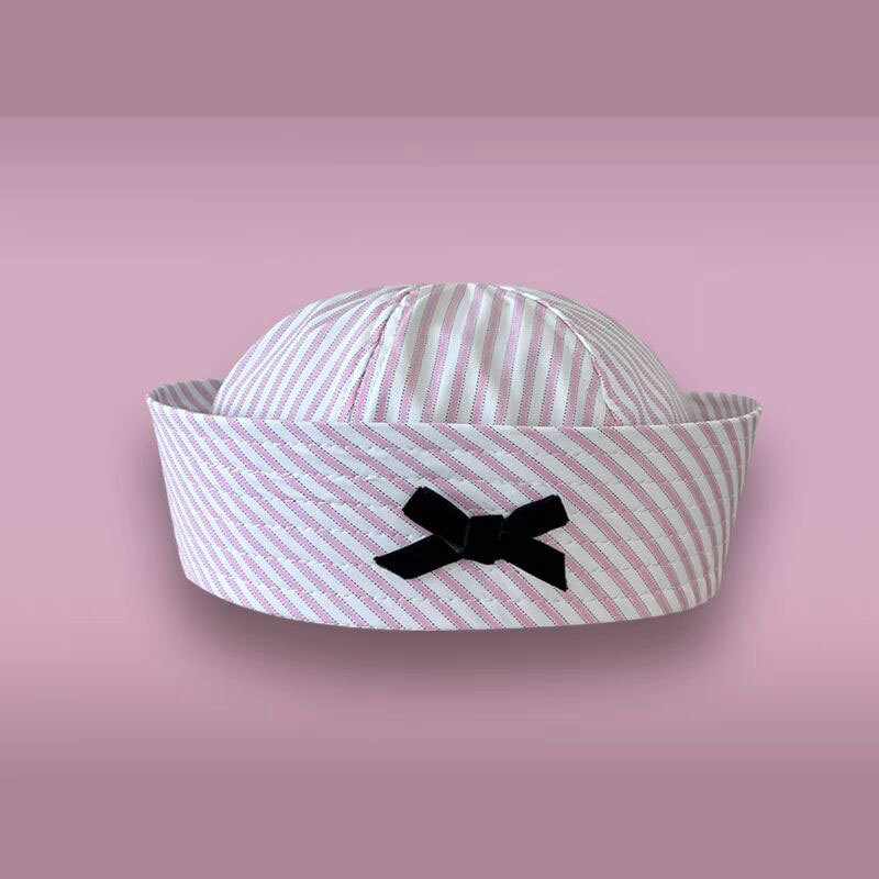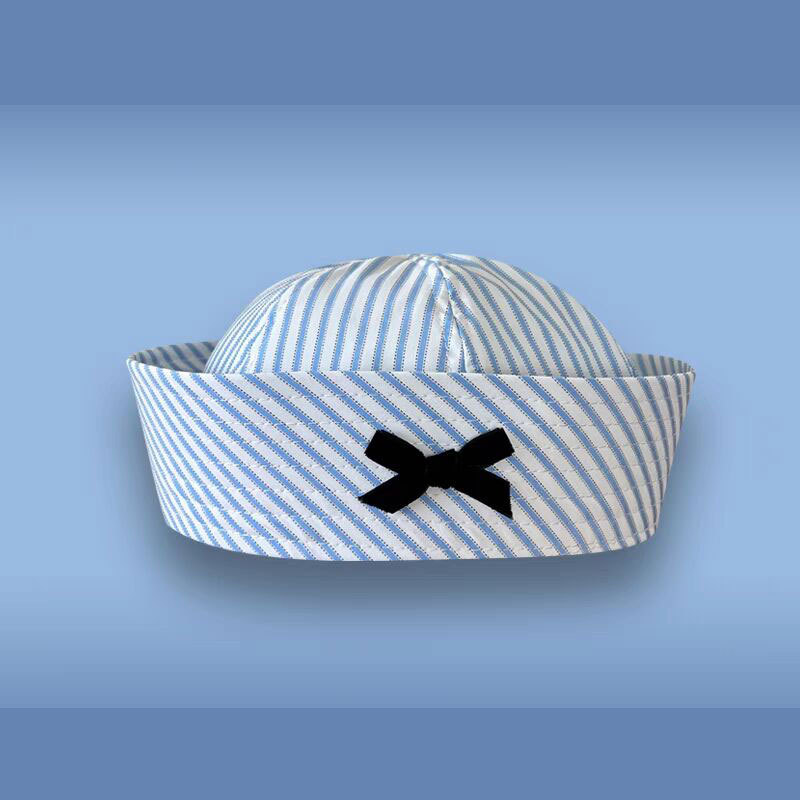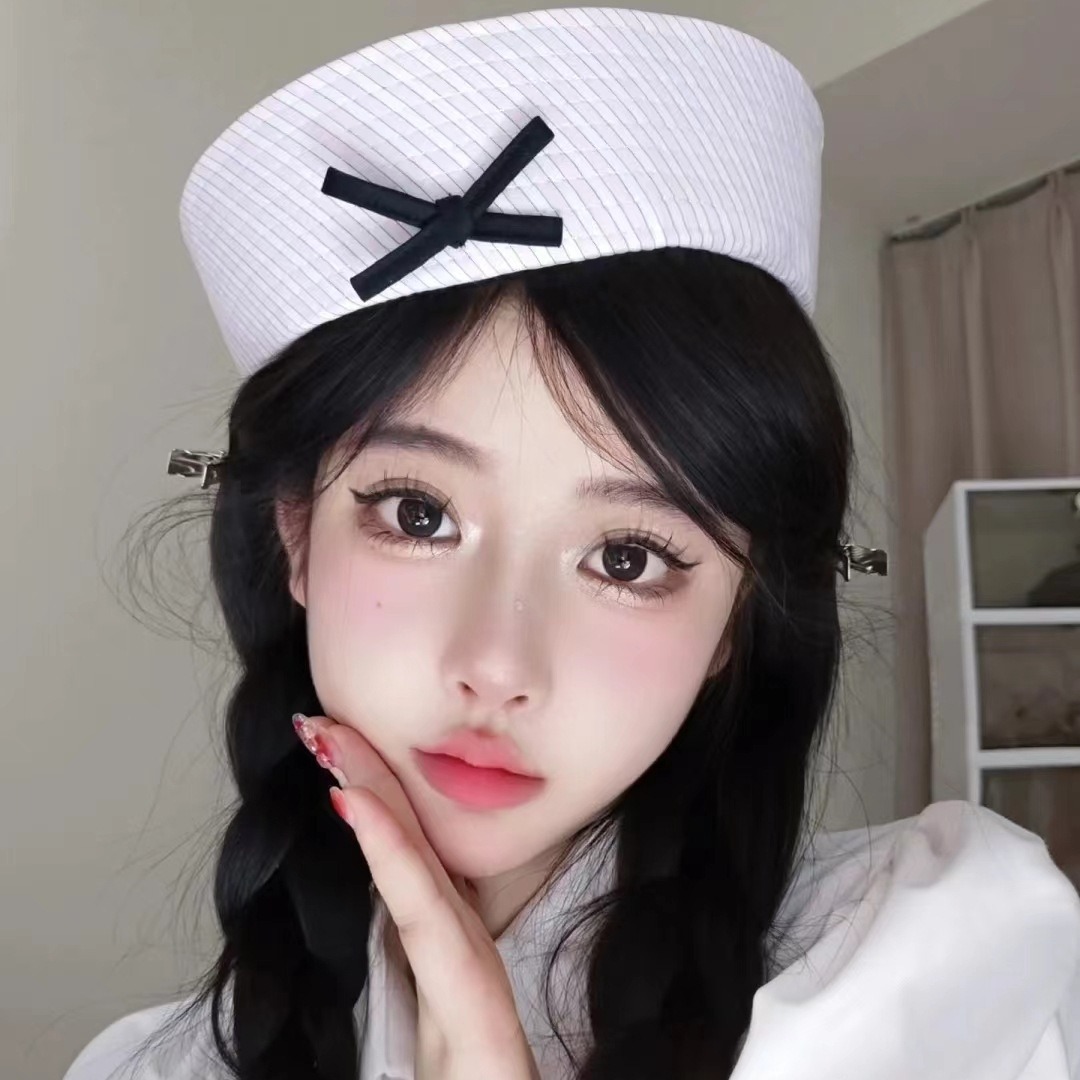 新款水手帽女款春秋夏天日系可爱条纹蝴蝶结翻檐帽海军帽子潮