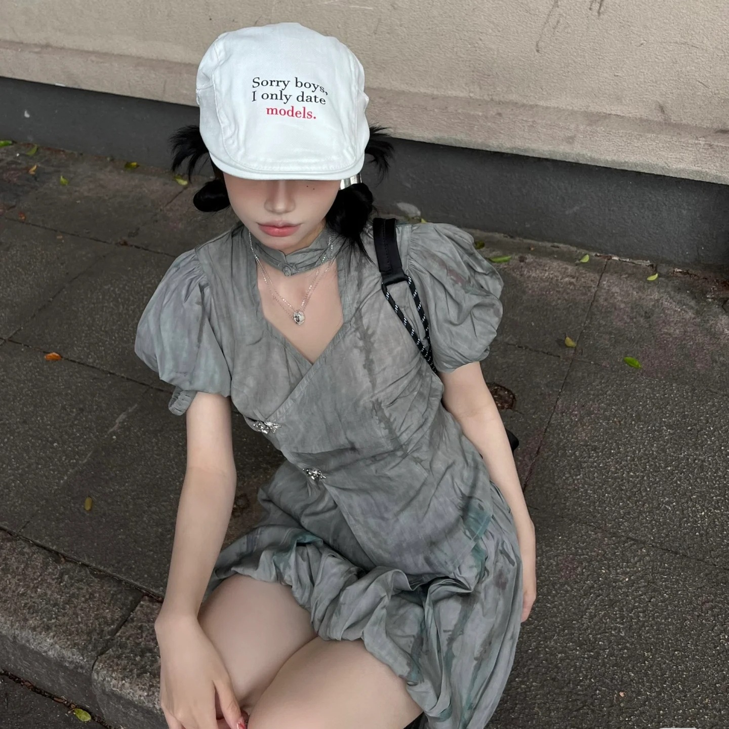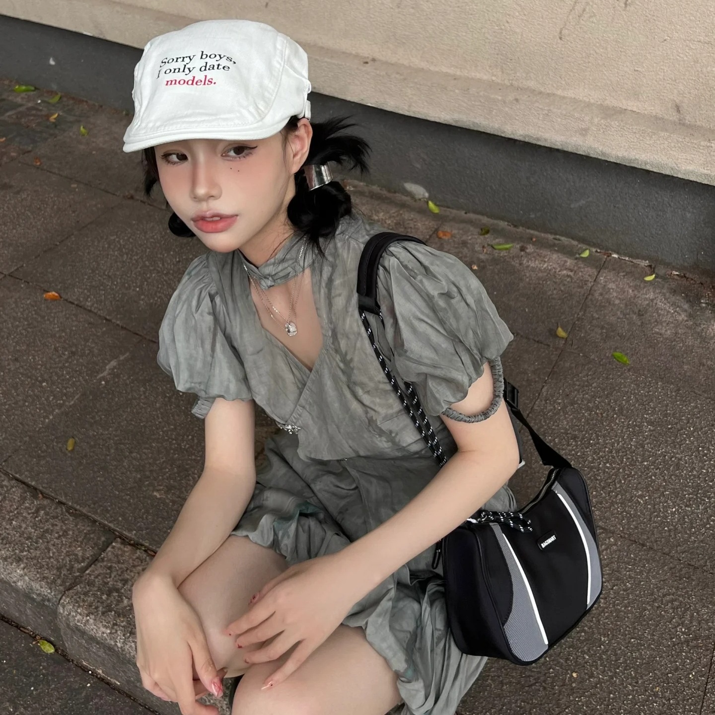 白色网红ins字母显脸小前进帽子简约百搭时尚出街贝雷帽画家帽女