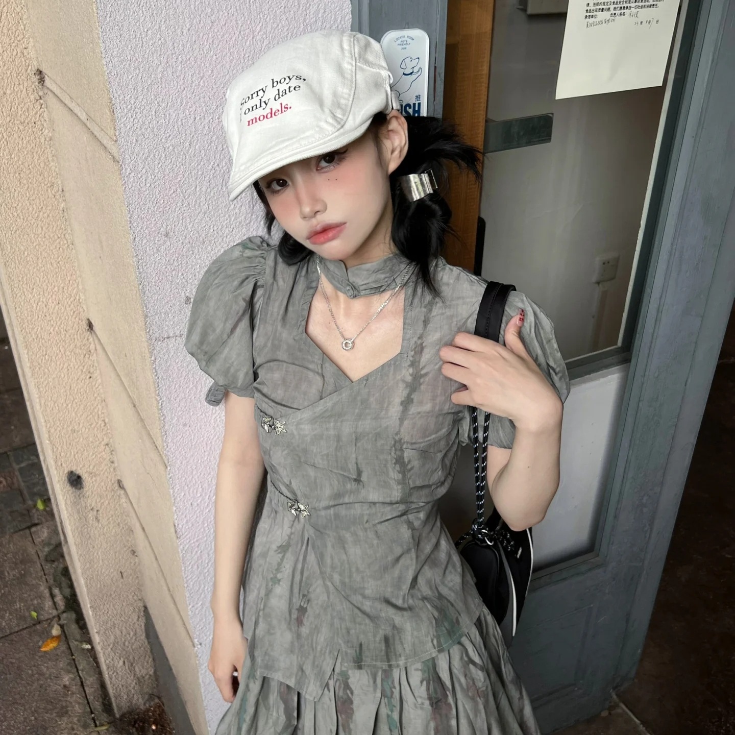 时尚夏季新款气质纯色简约显瘦收腰修身中长款开衩设计感连衣裙女