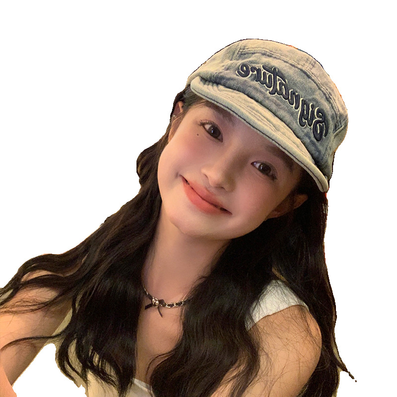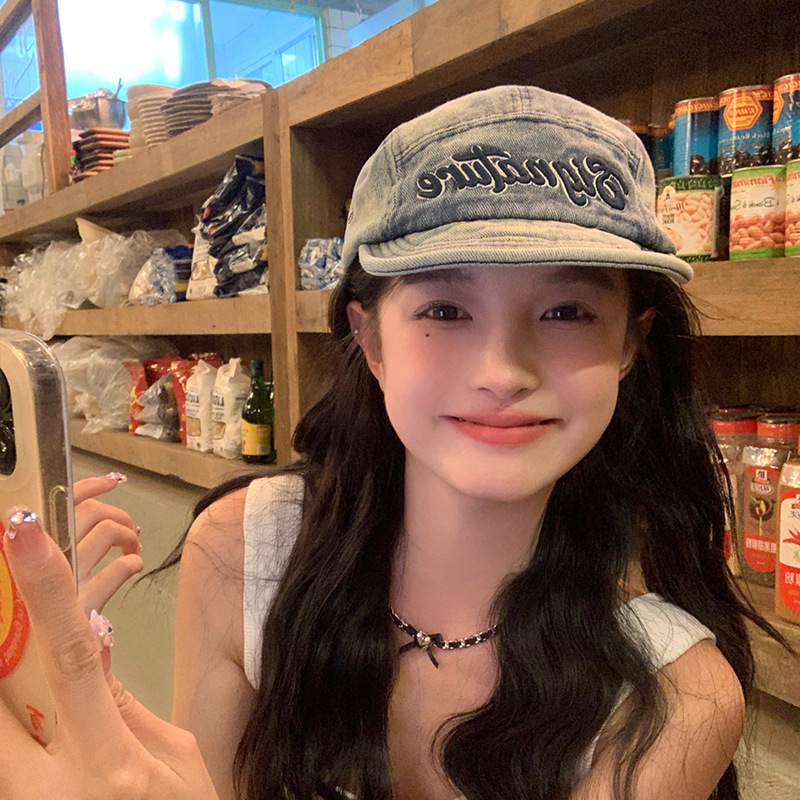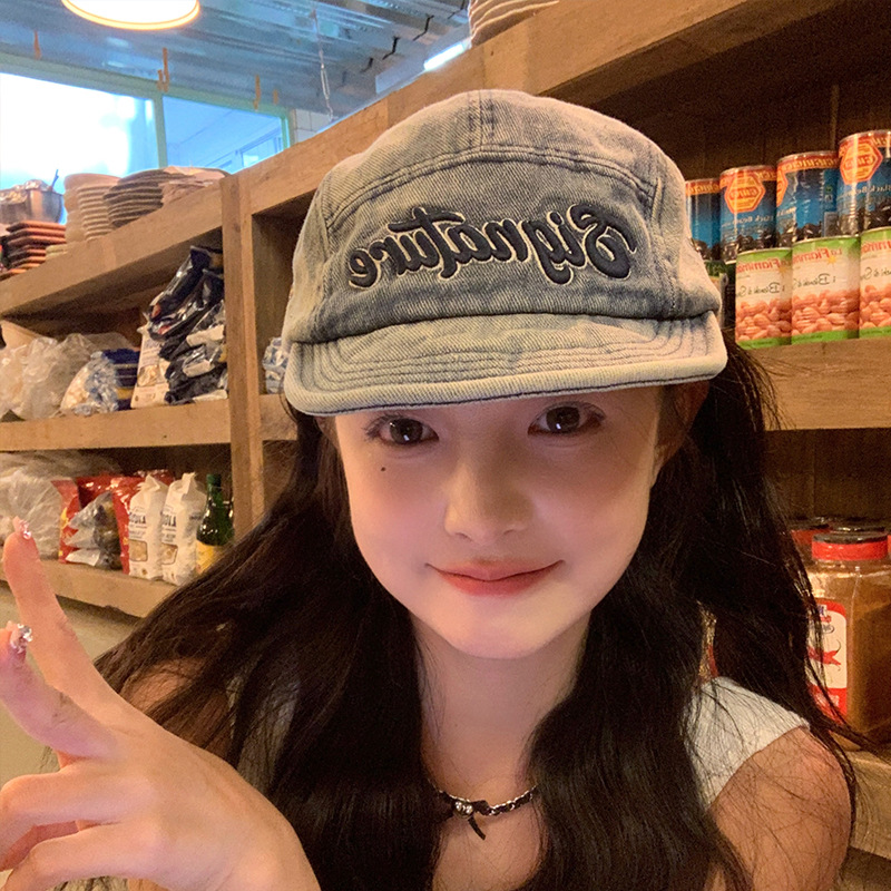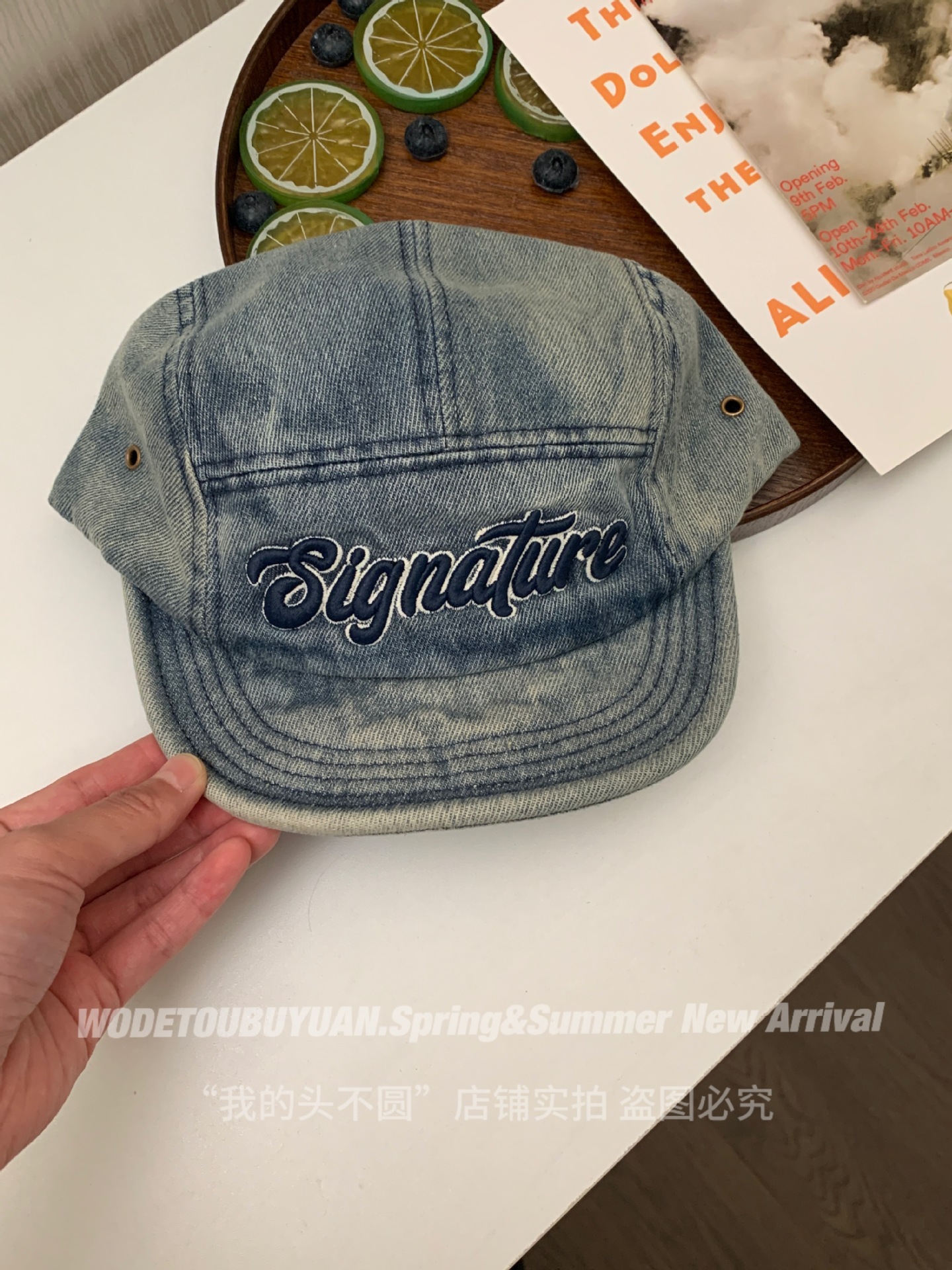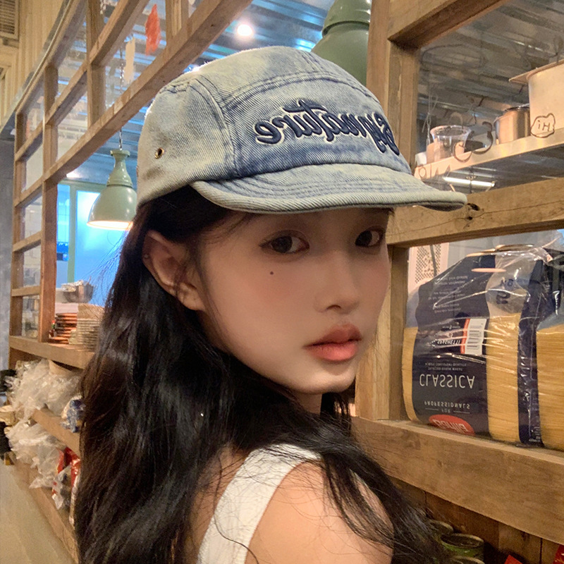 新款短帽檐美式复古软顶工装棒球帽子女夏季街头字母牛仔鸭舌帽子