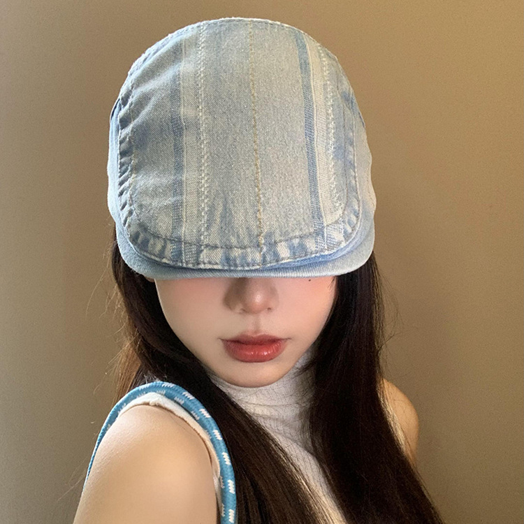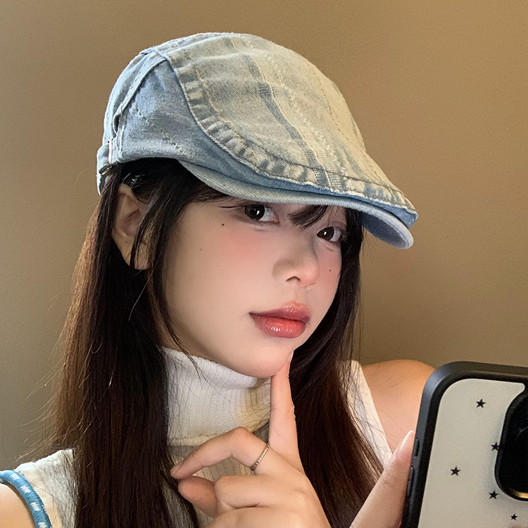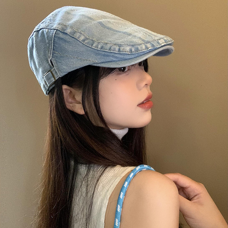 水洗牛仔前进帽女春夏款日系反戴大头围贝雷帽复古做旧画家帽子潮