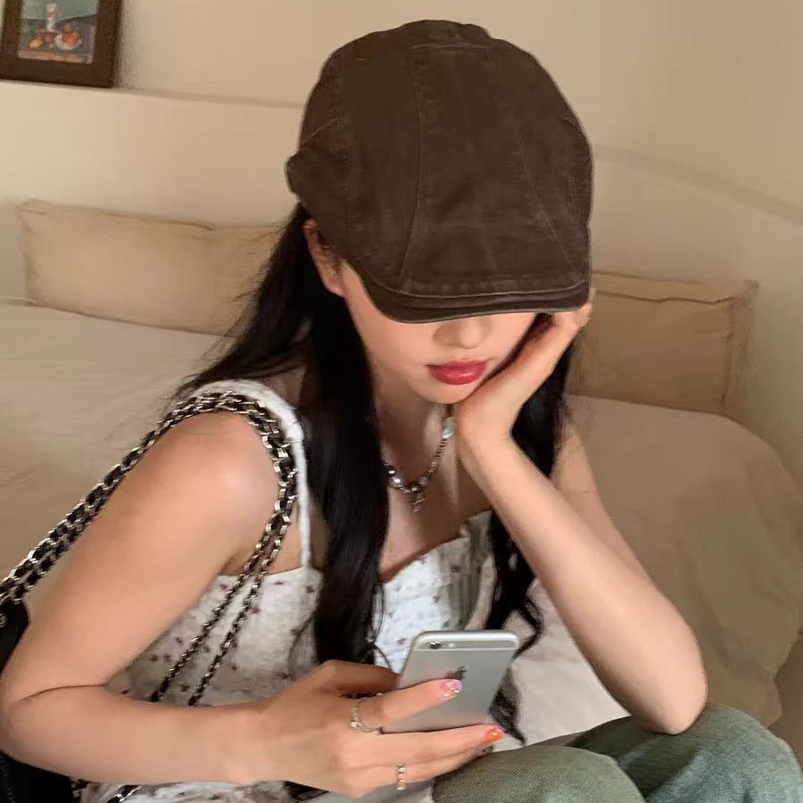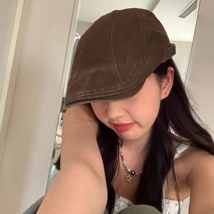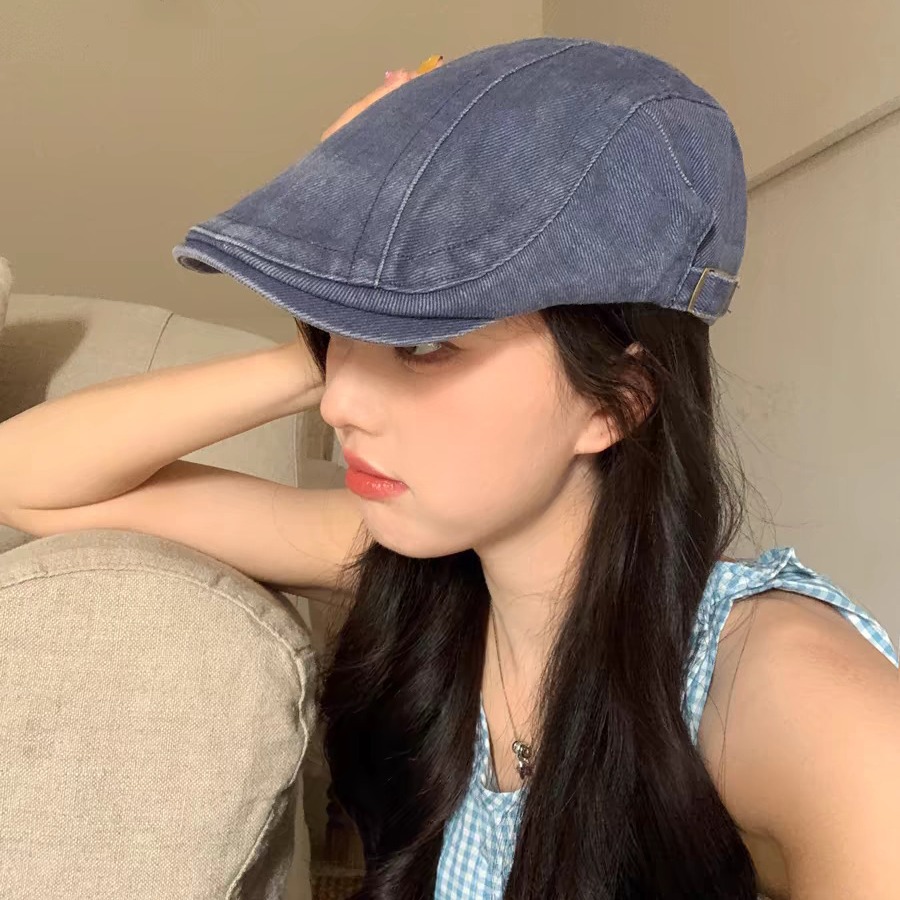 新款复古ins日系水洗做旧前进帽男女牛仔画家帽英伦风百搭帽