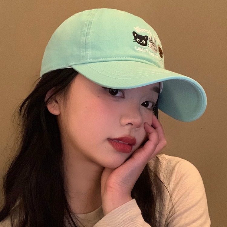 绿色刺绣棒球帽女韩版百搭大头围显脸小鸭舌帽宽帽檐大脸深顶帽子