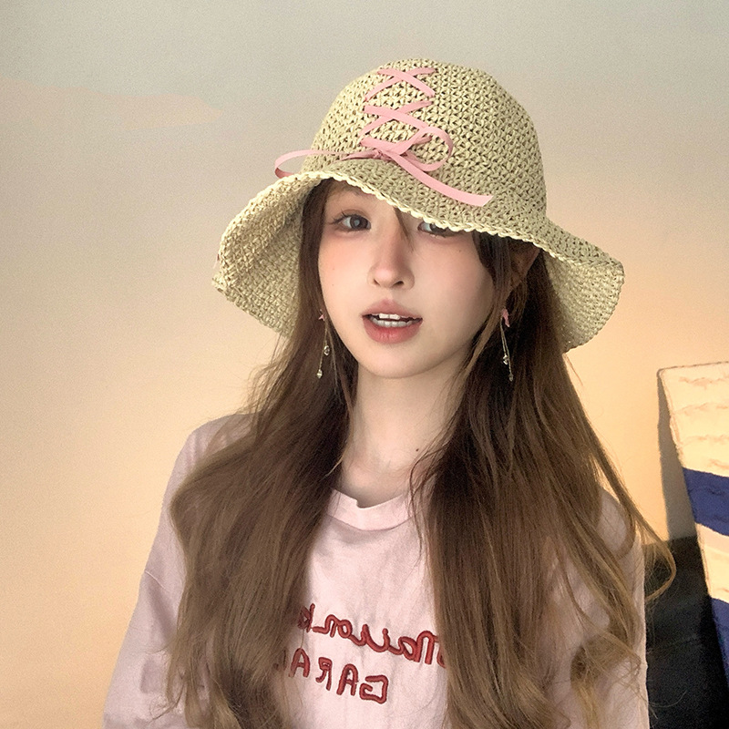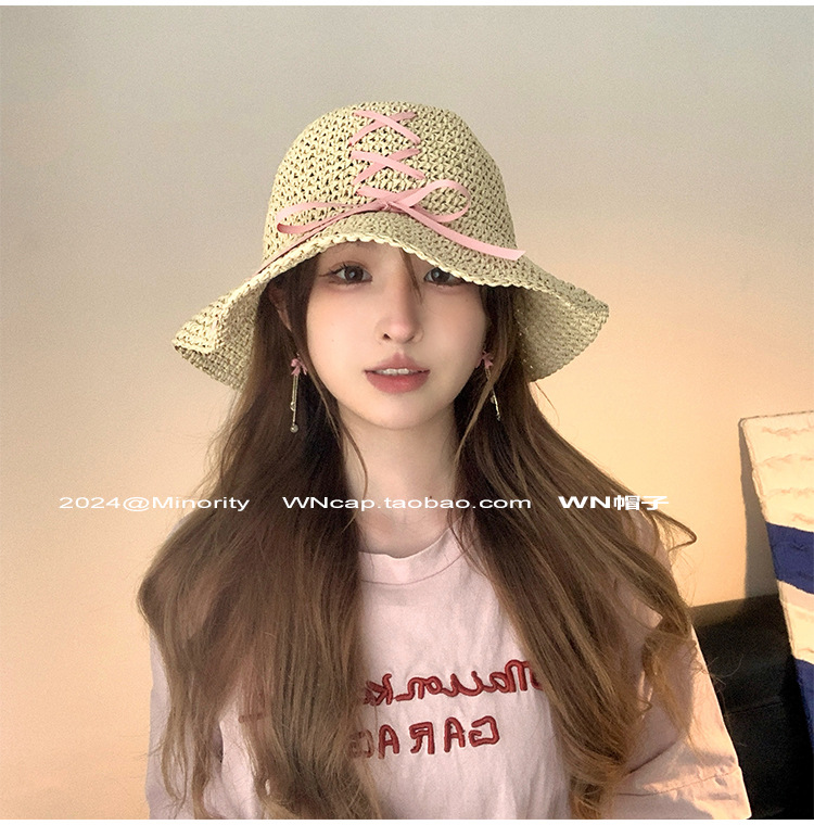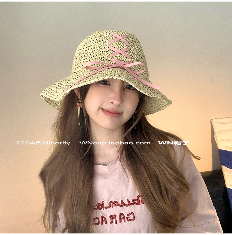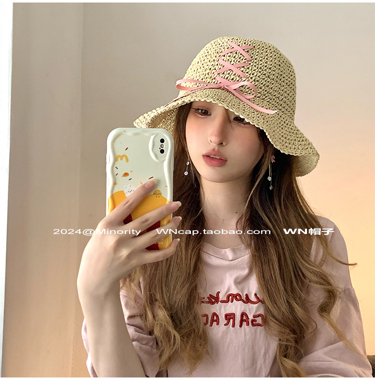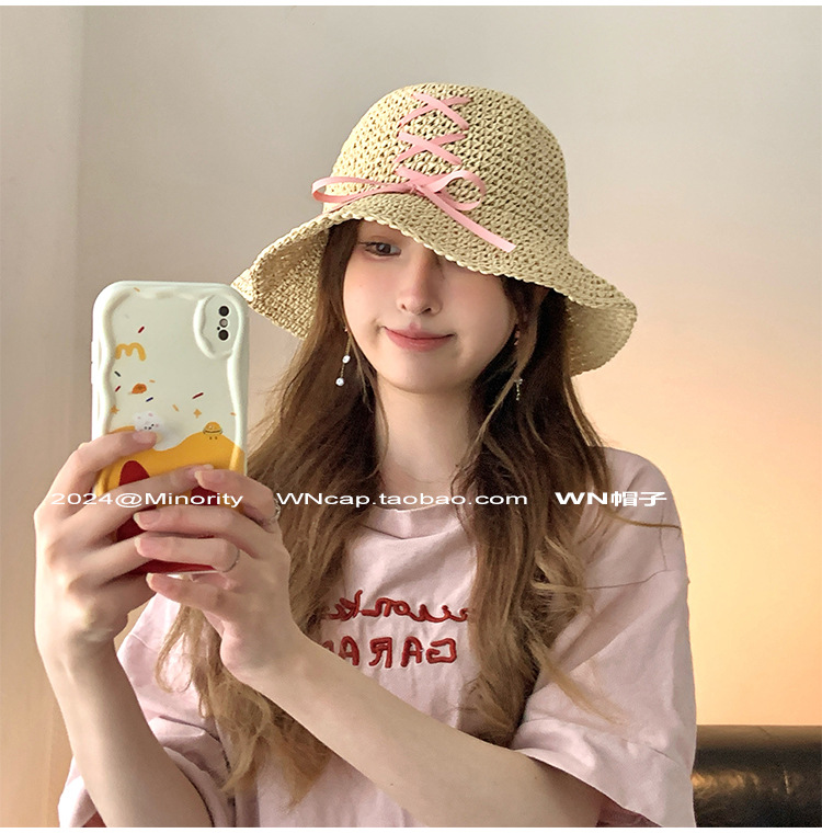 草编帽子女款新款百搭可爱遮阳帽海边沙滩度假防紫外线渔夫帽