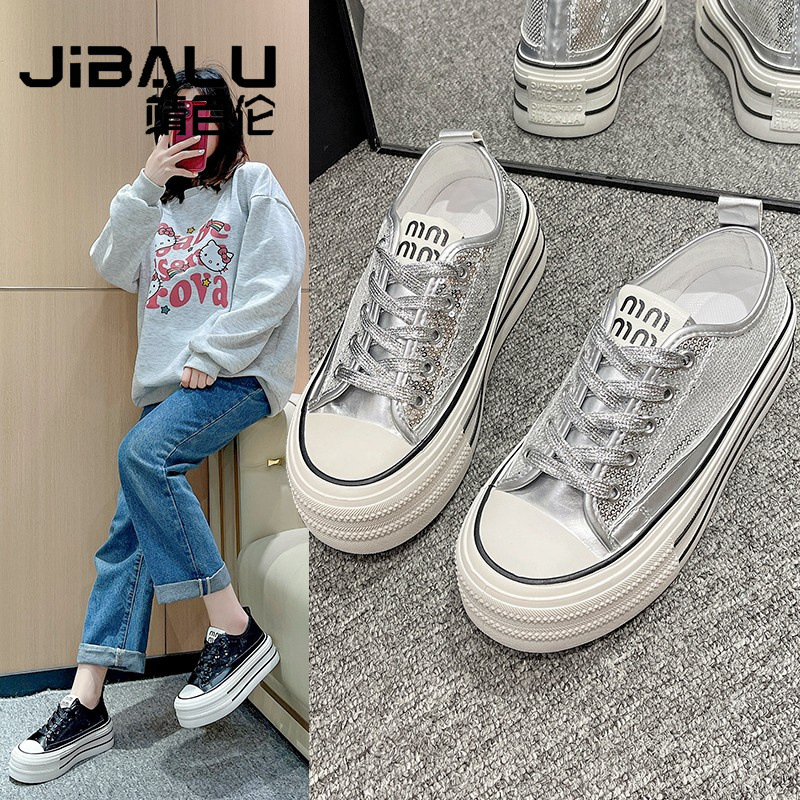 银色休闲鞋女新款韩版春运动女鞋厚底松糕鞋学生小白鞋帆布鞋