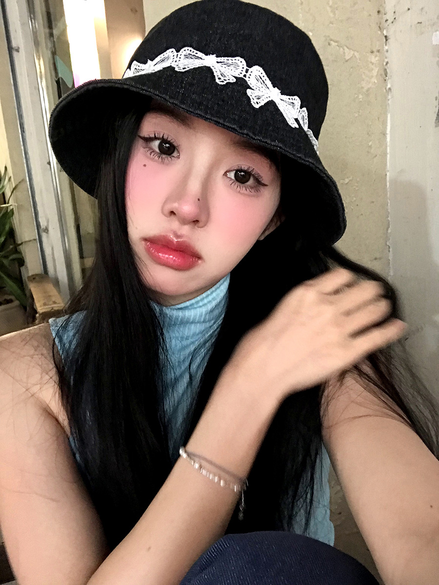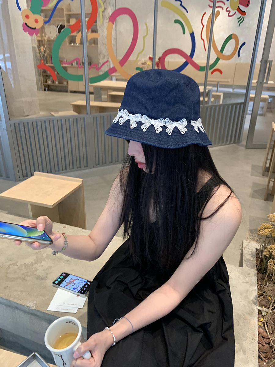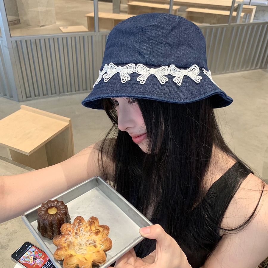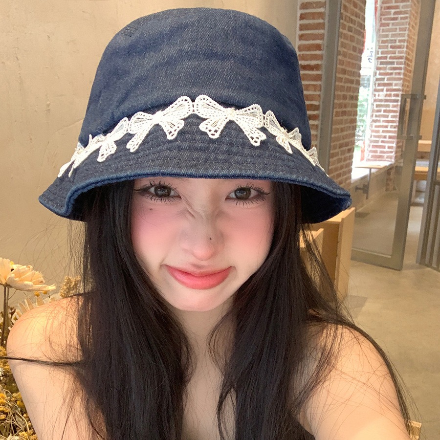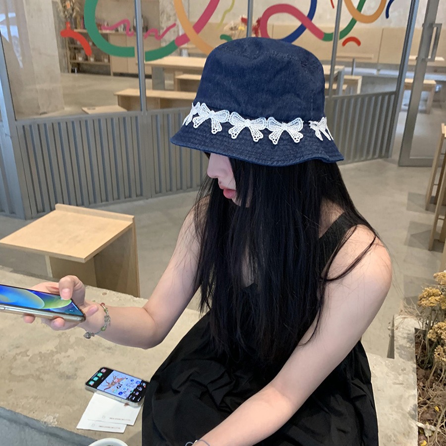 新款甜美蝴蝶结盆帽防晒遮阳帽子学生休闲复古百搭牛仔渔夫帽女