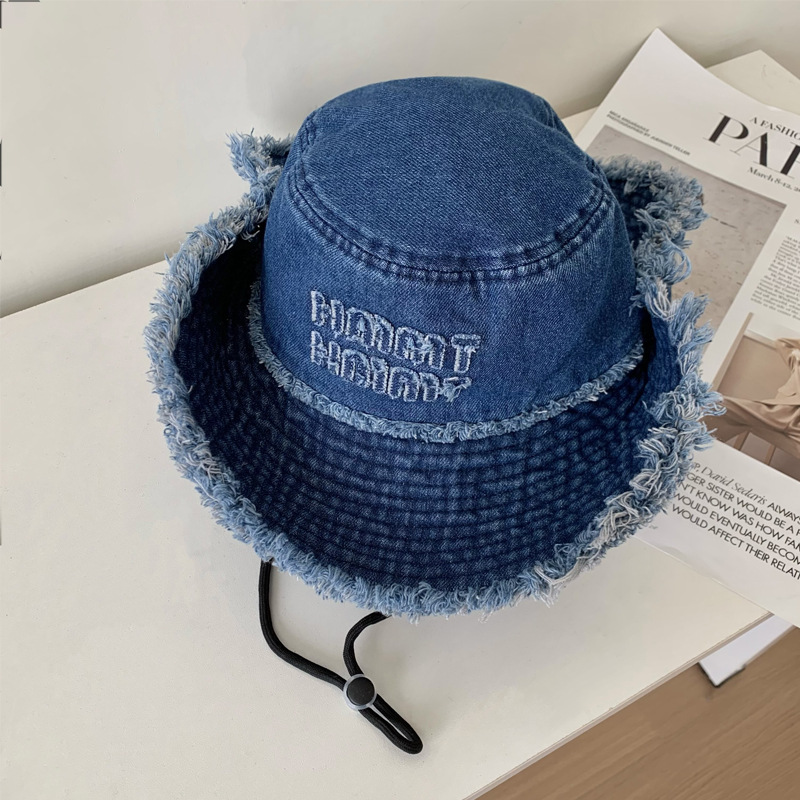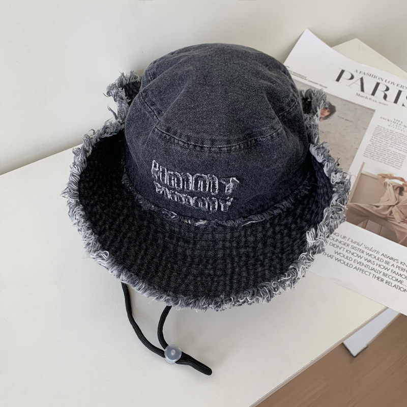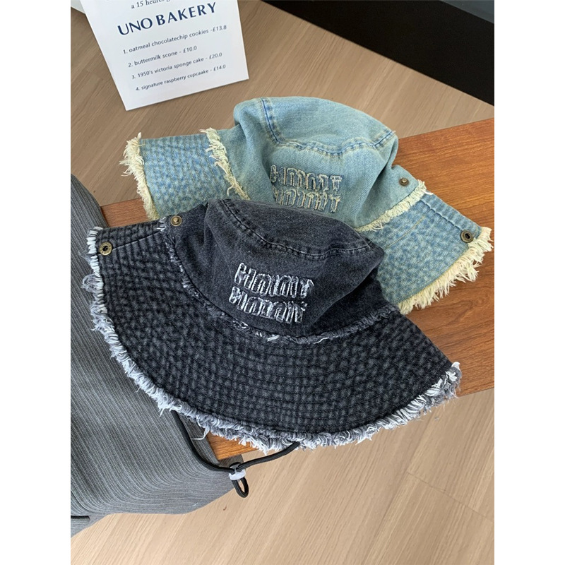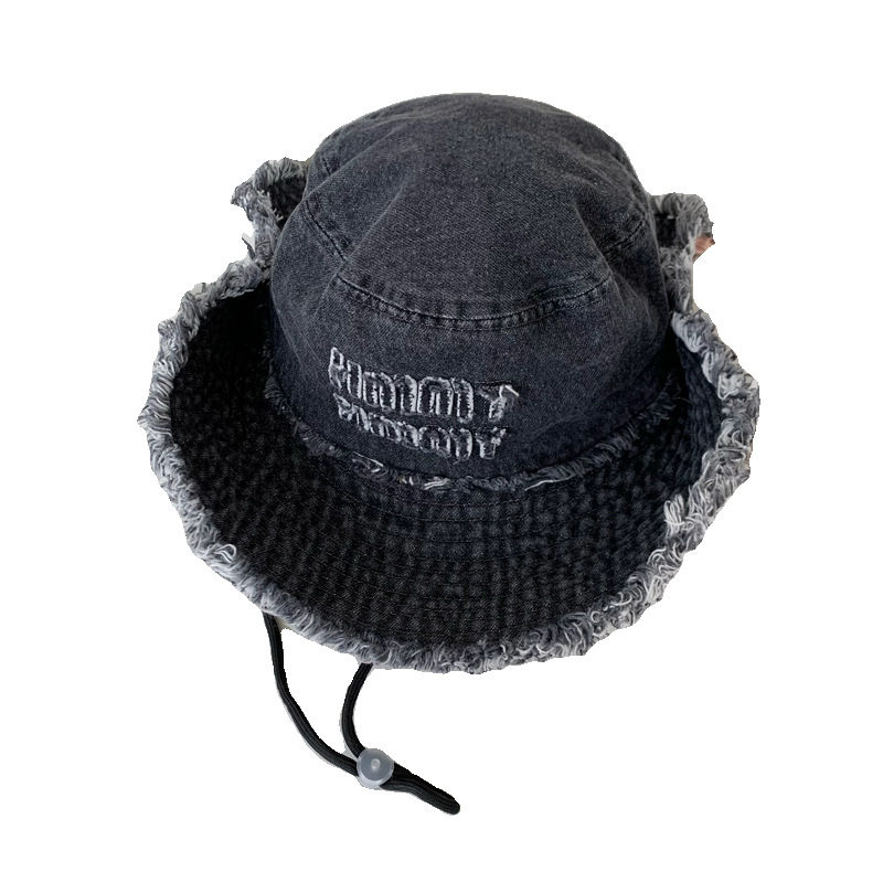 西部牛仔日系复古做旧小众设计感渔夫帽女磨边个性盆帽显脸小帽子