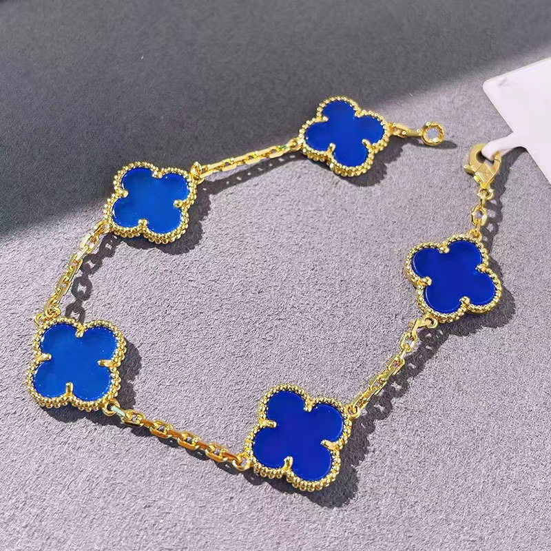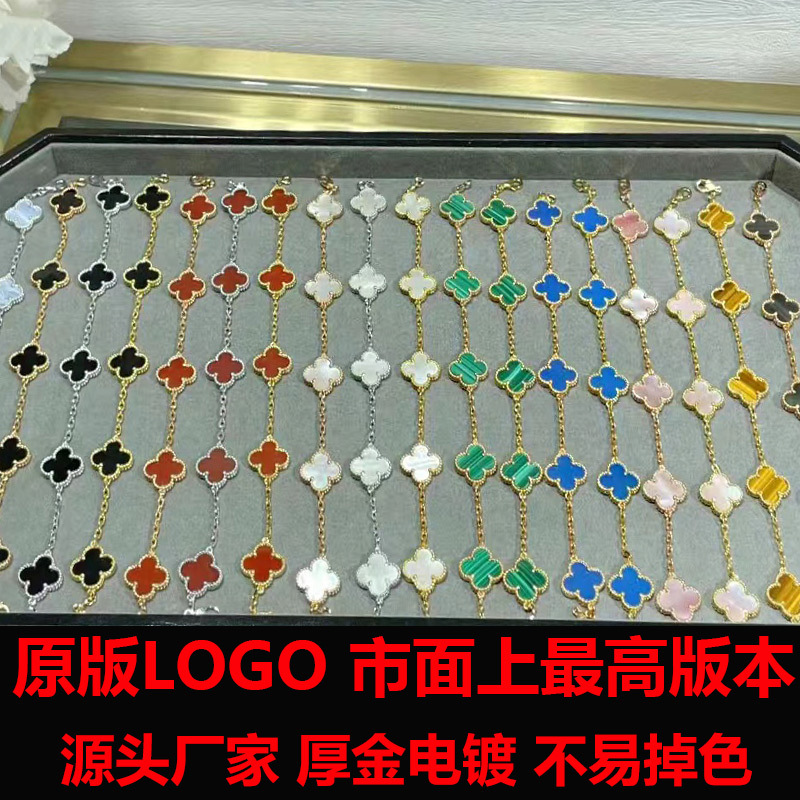 CNC高版本V金梵家四叶草五花手链女厚镀18k玫瑰金天然贝母红玉髓