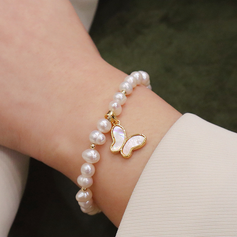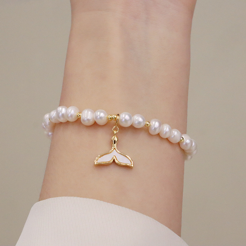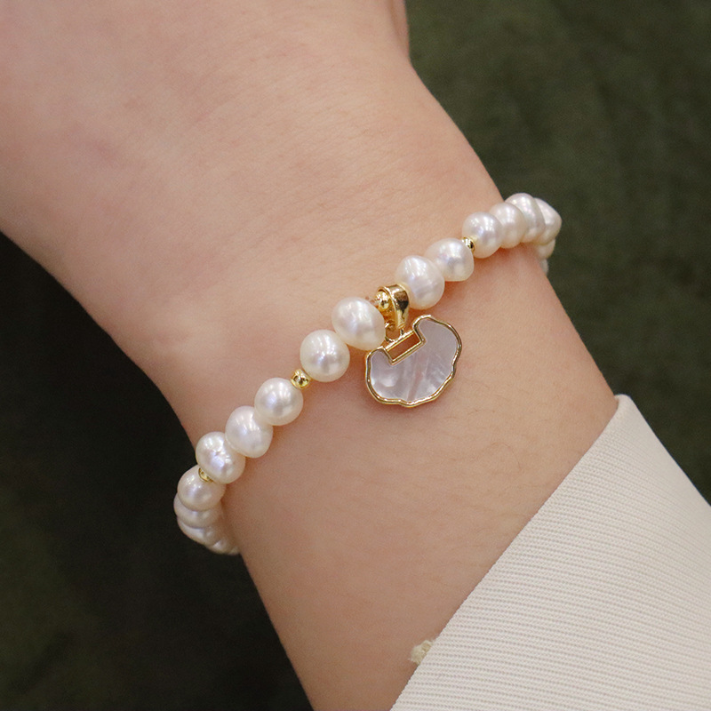 天然淡水珍珠手链女生高级感ins小众设计贝壳手串闺蜜手饰品