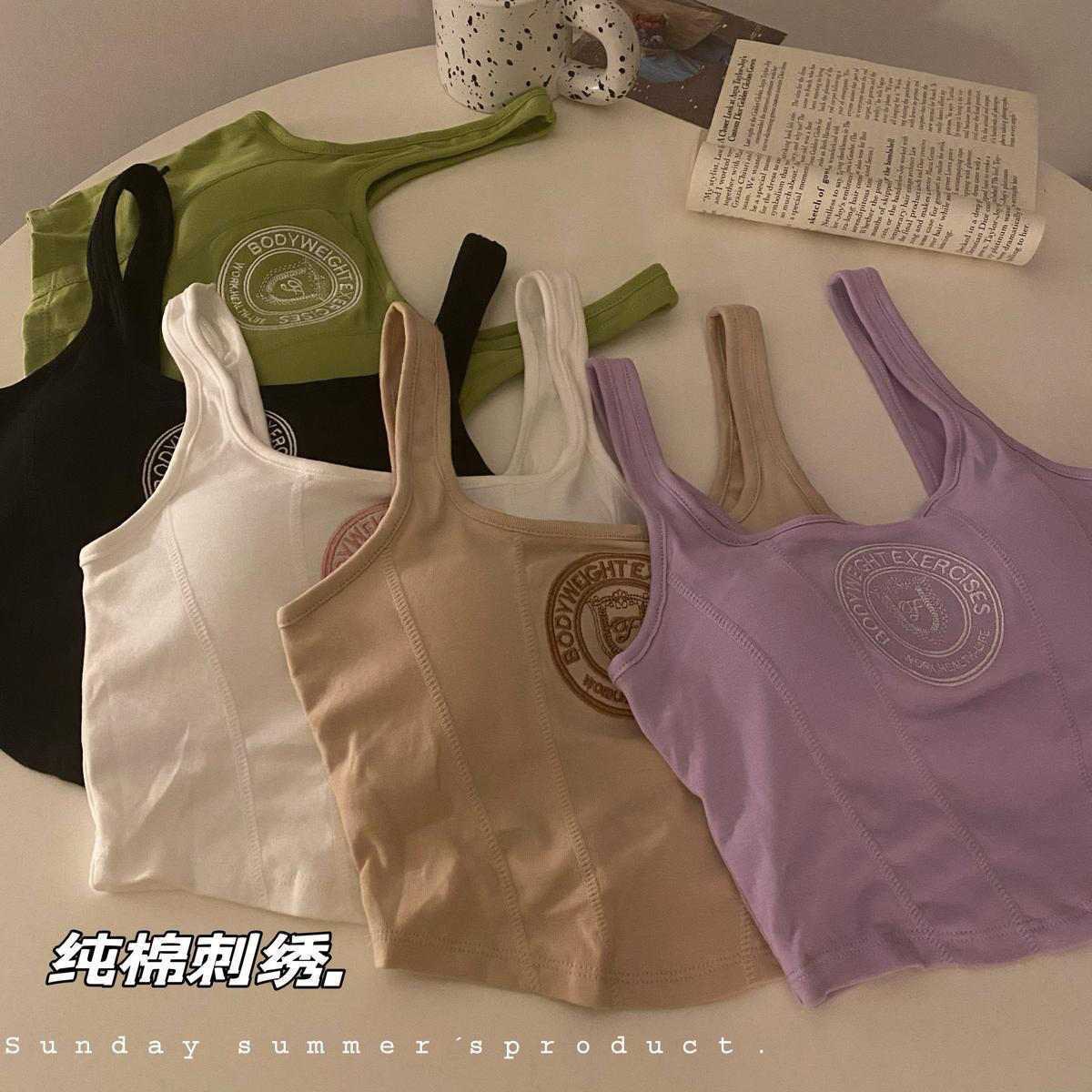 夏季小众性感辣妹纯欲风修身显身材外穿带胸垫短款吊带小背心