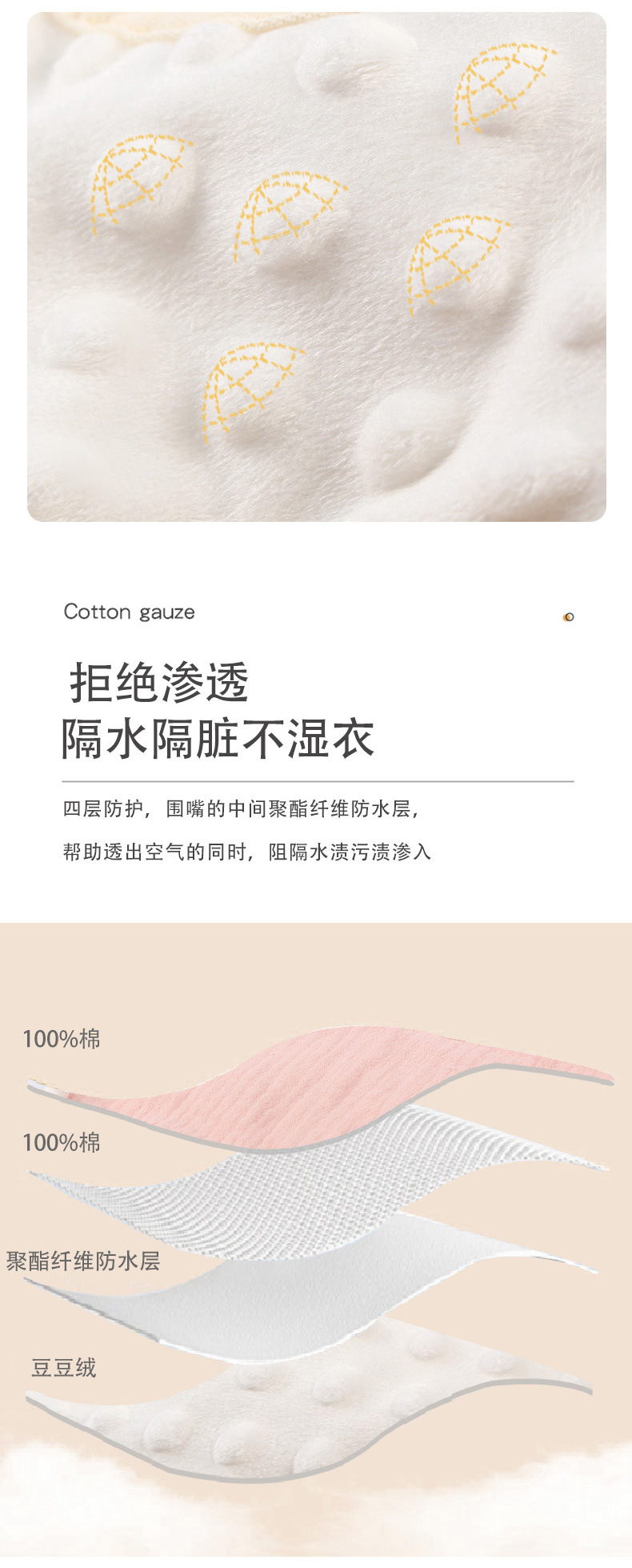 婴儿纯棉纱布围嘴口水巾防水男女围脖儿童秋冬天豆豆绒