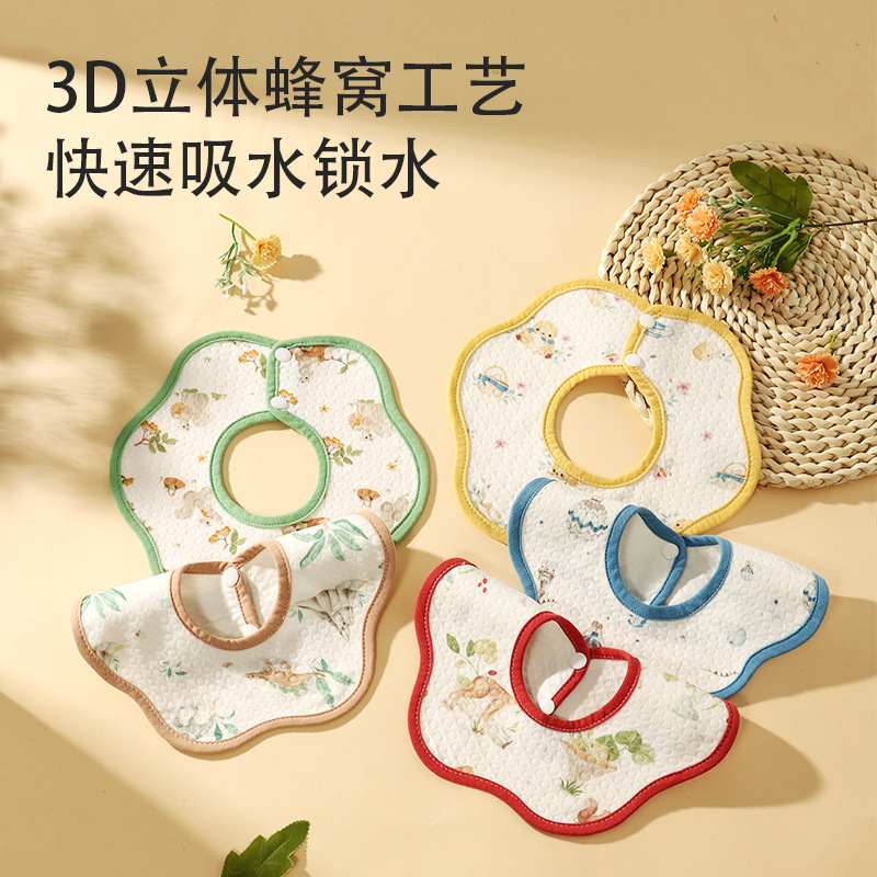 婴儿口水巾a类夏季纯棉防水宝宝围嘴吸水柔软防吐奶360花瓣围兜
