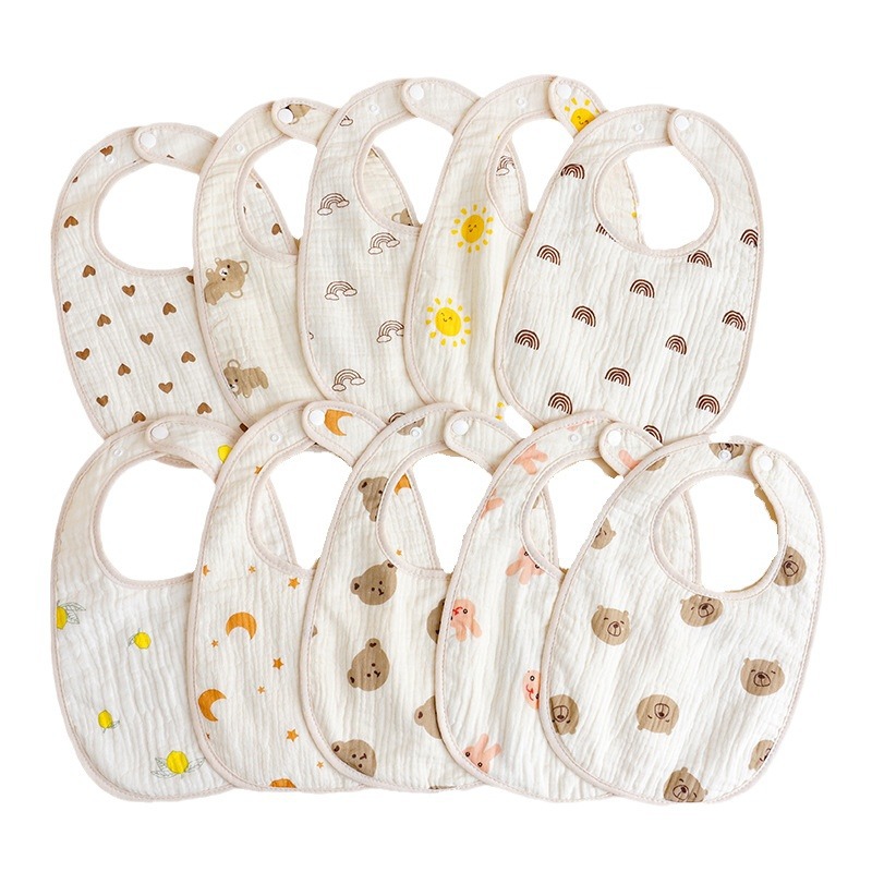 热销U型围嘴纱布围兜婴儿口水巾绉布透气吸水围