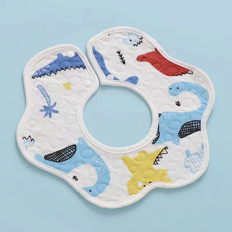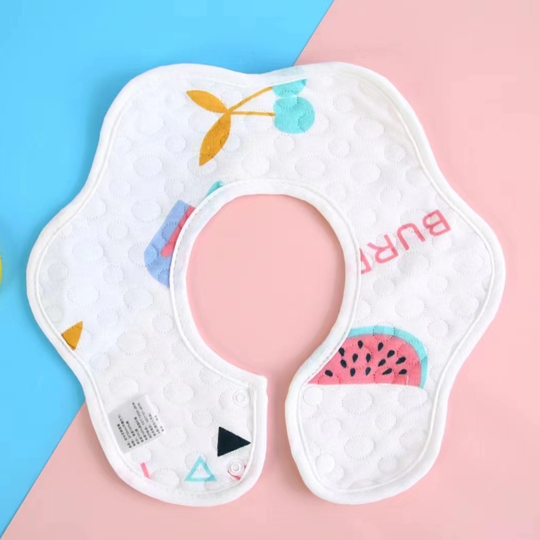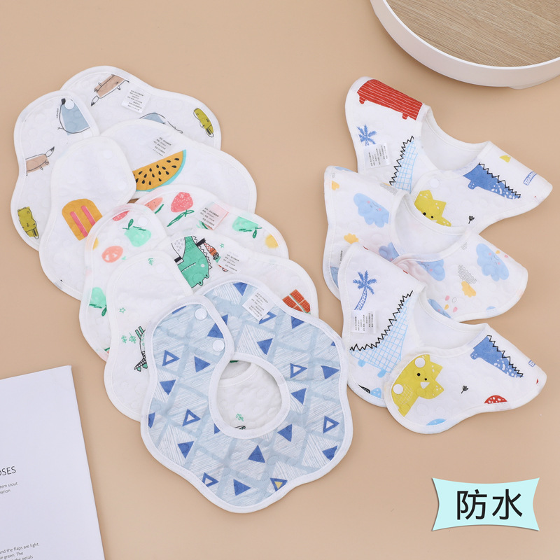 防水围嘴纯棉洗漱针织纱布儿童花瓣宝宝围兜婴儿360度旋转口水巾
