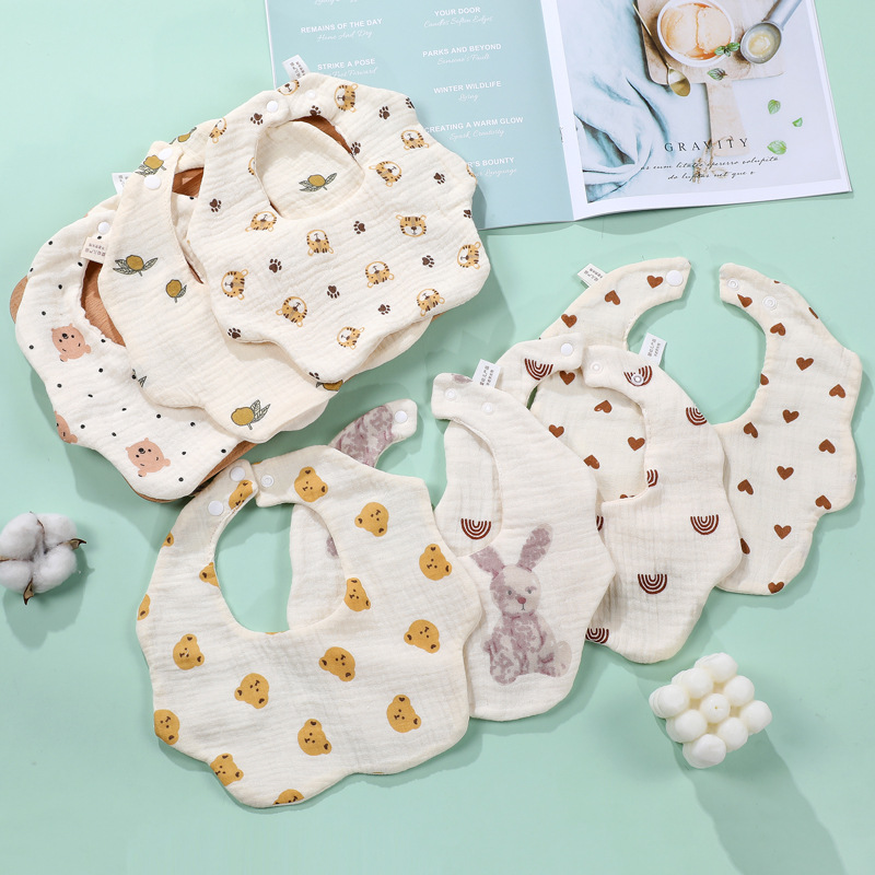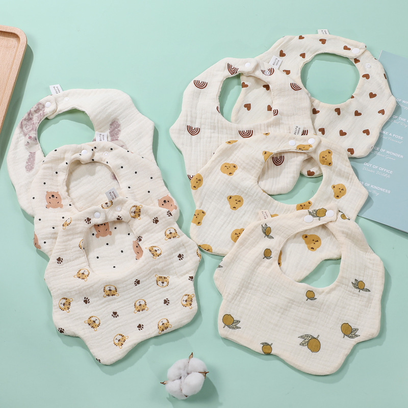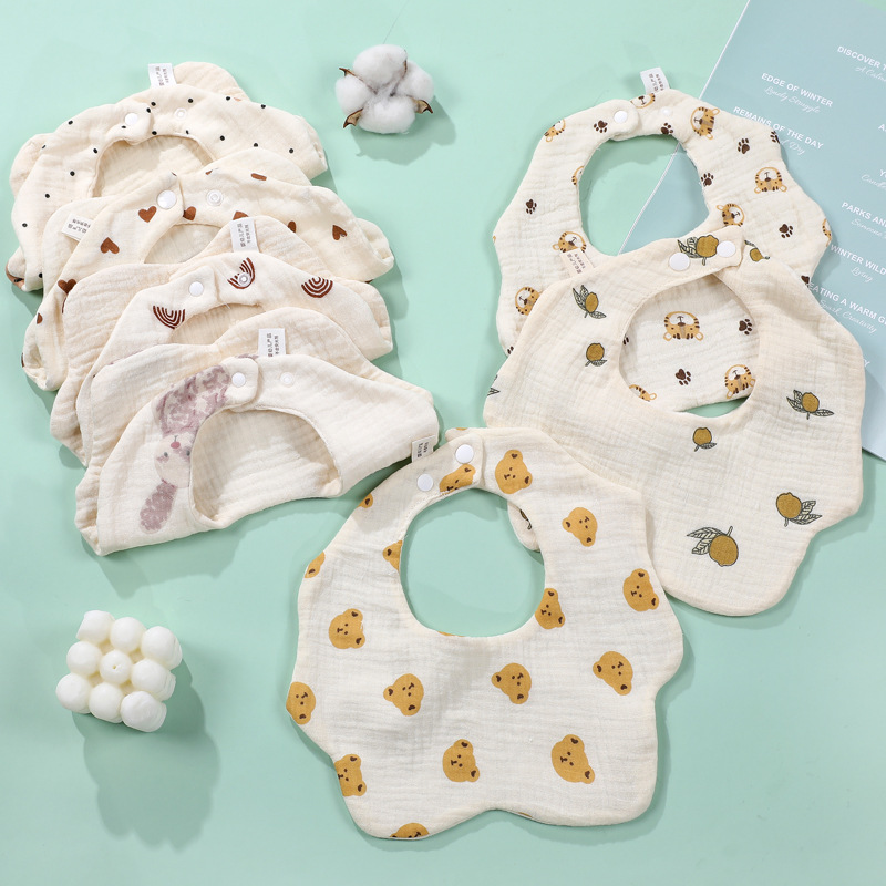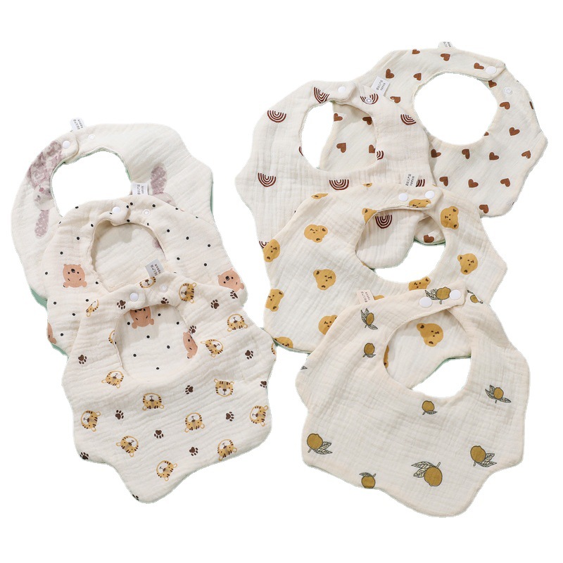 纯棉围嘴纱布宝宝口水巾儿童全棉360度可旋转围兜六层绉布口水巾