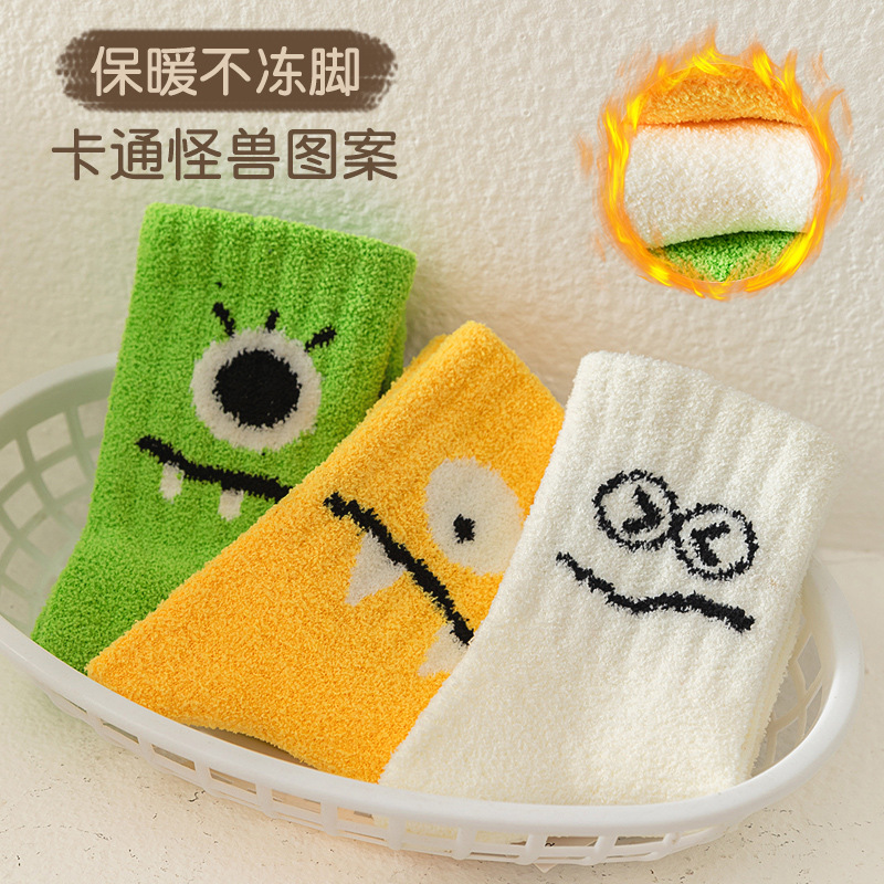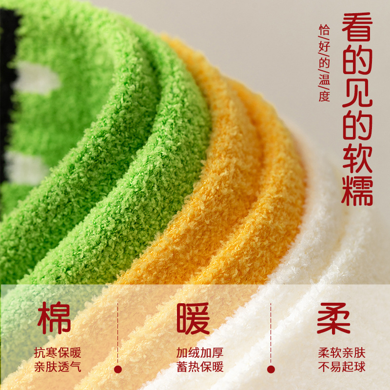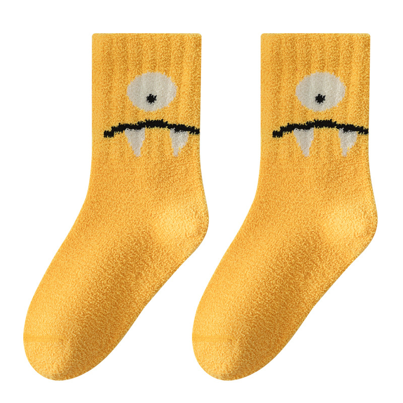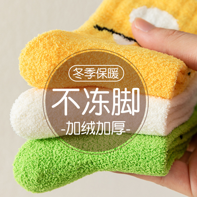 毛绒袜男女童秋冬款中筒表情袜加厚保暖地板袜澳绒睡眠袜冬长袜