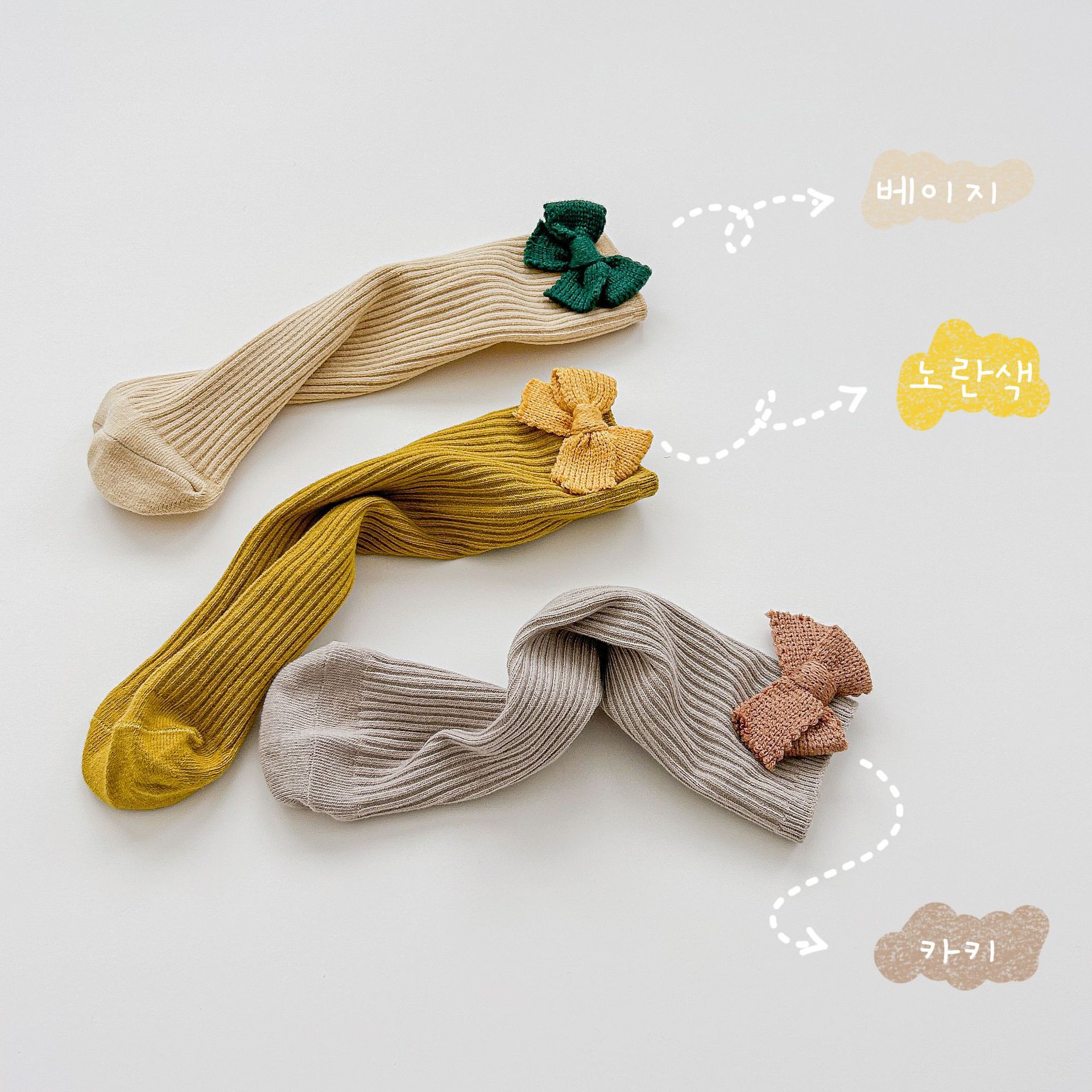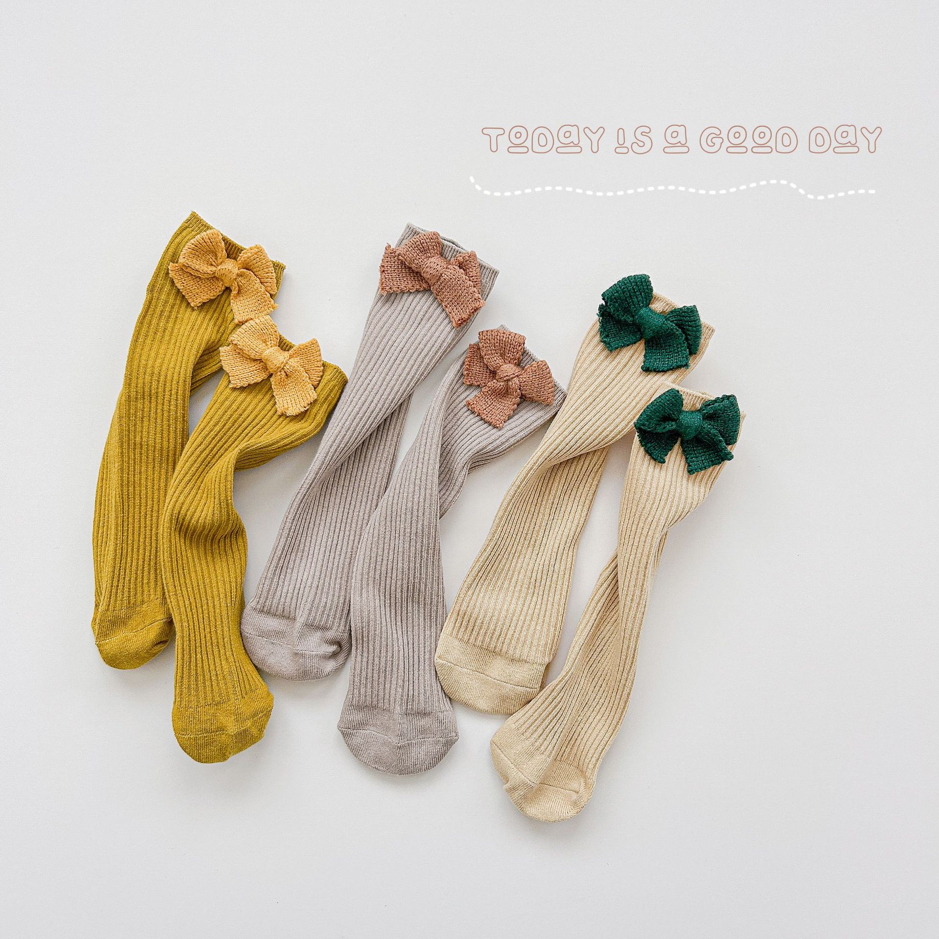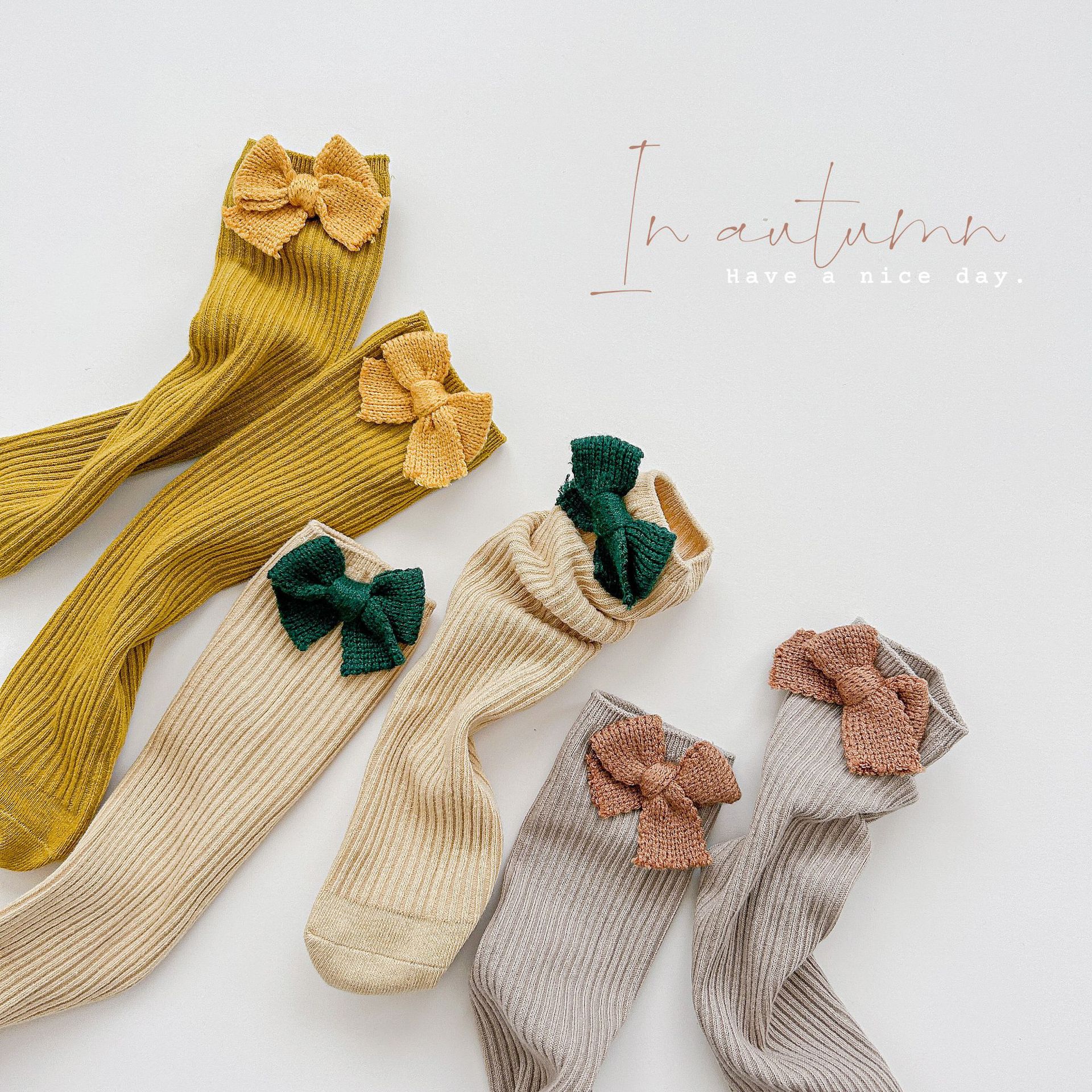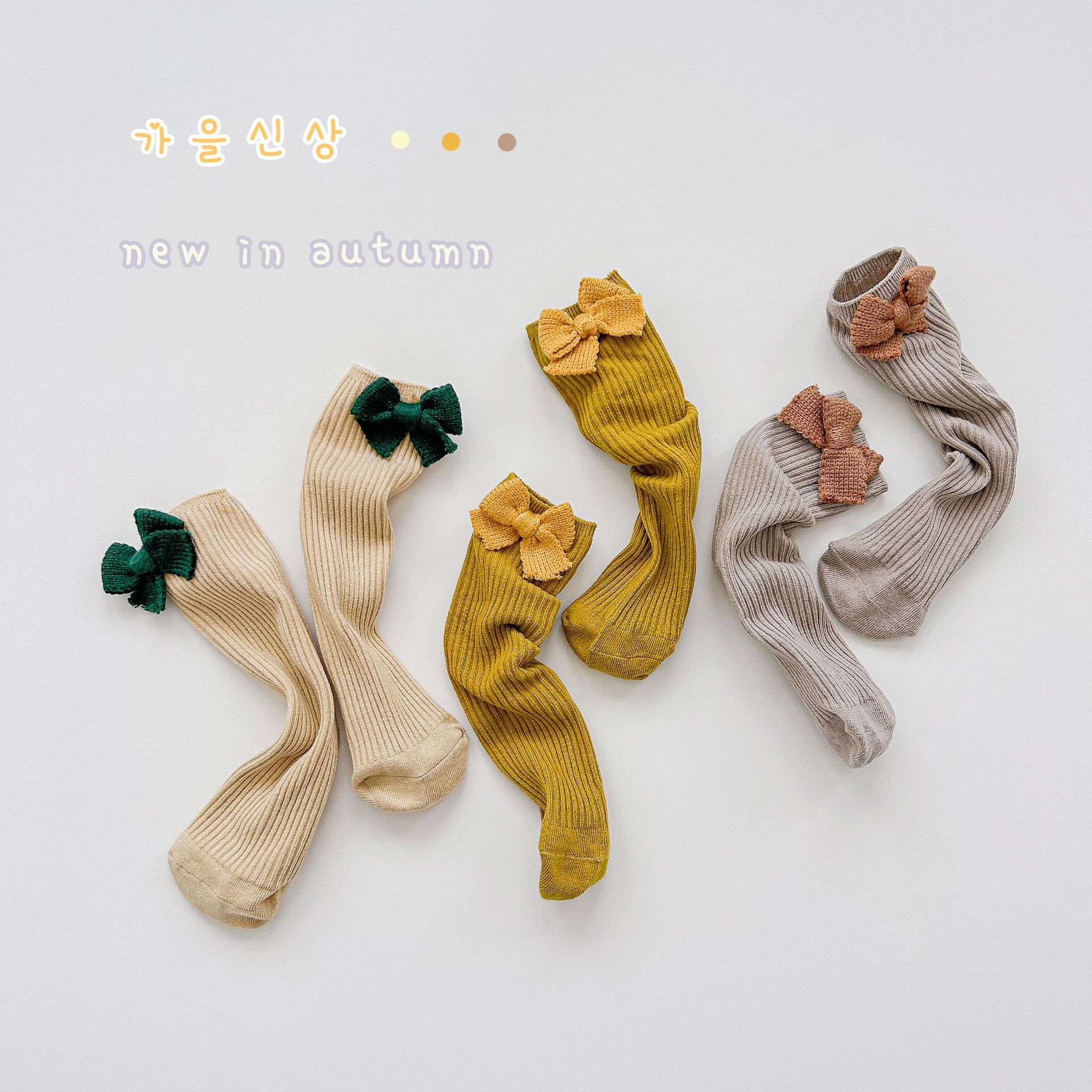 孙姑娘儿童小腿袜春季韩版ins长筒袜双针织蝴蝶结女童堆堆袜