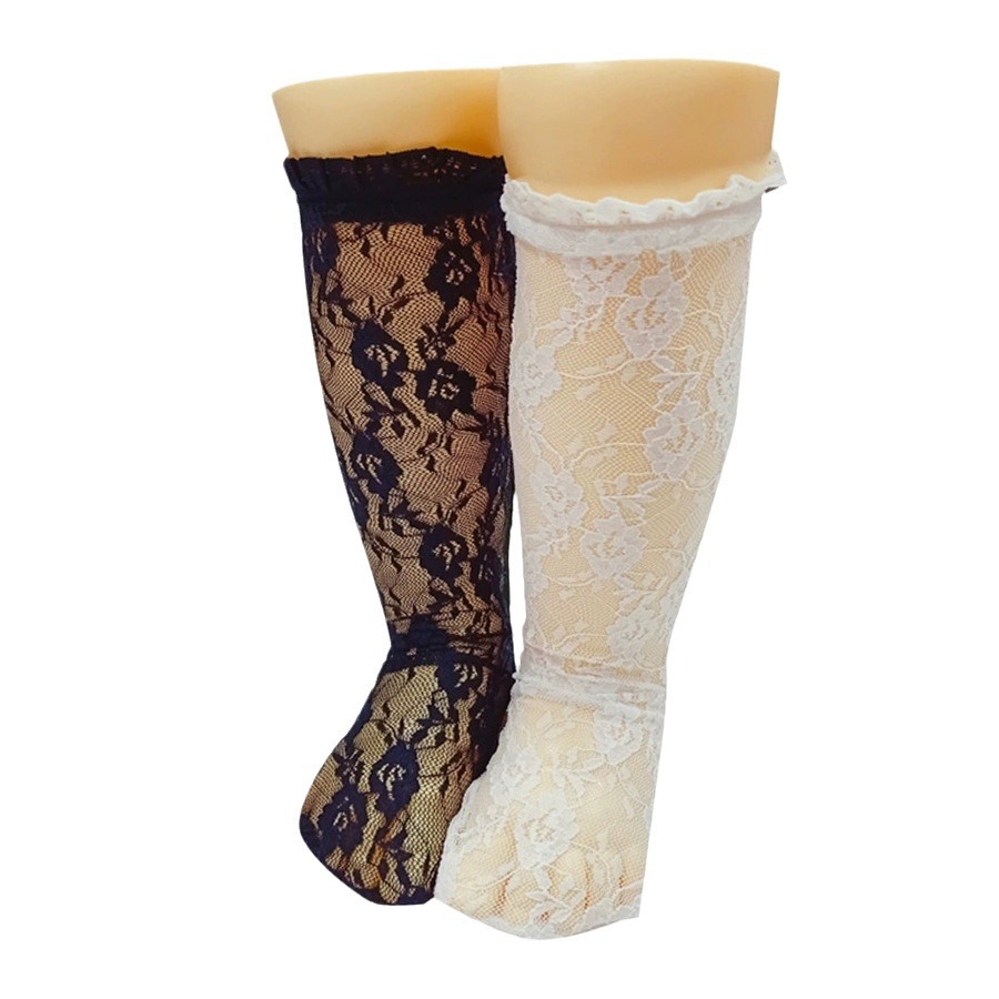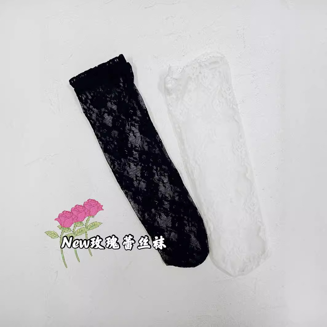 玫瑰花纹女孩袜子长款童袜及膝蕾丝网眼袜宝宝可爱甜美奶油花边袜