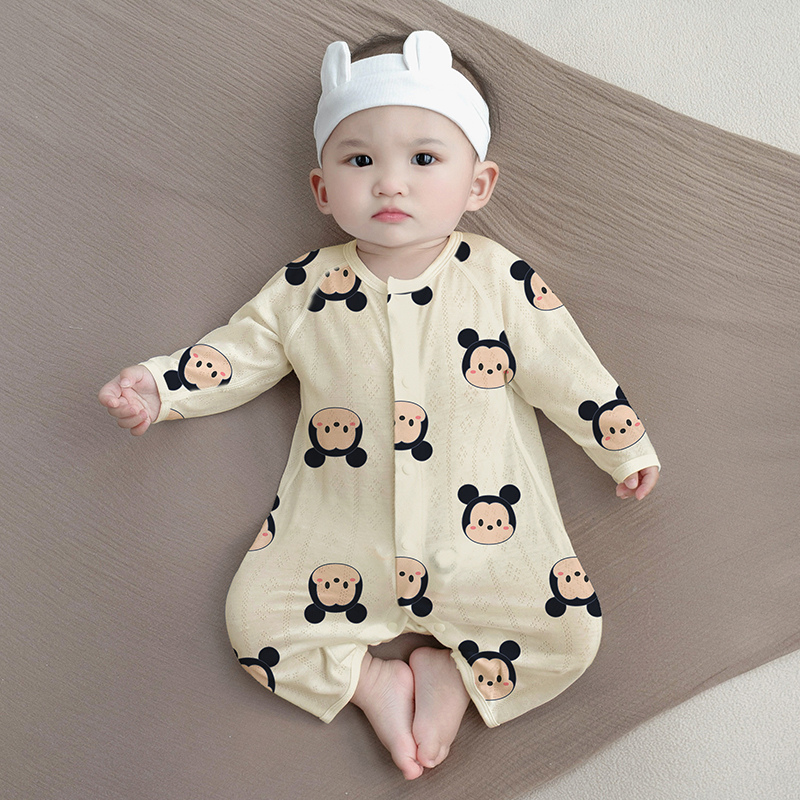 婴儿连体衣夏季薄款长袖无骨新生宝宝衣服夏装空调服哈衣爬服超萌