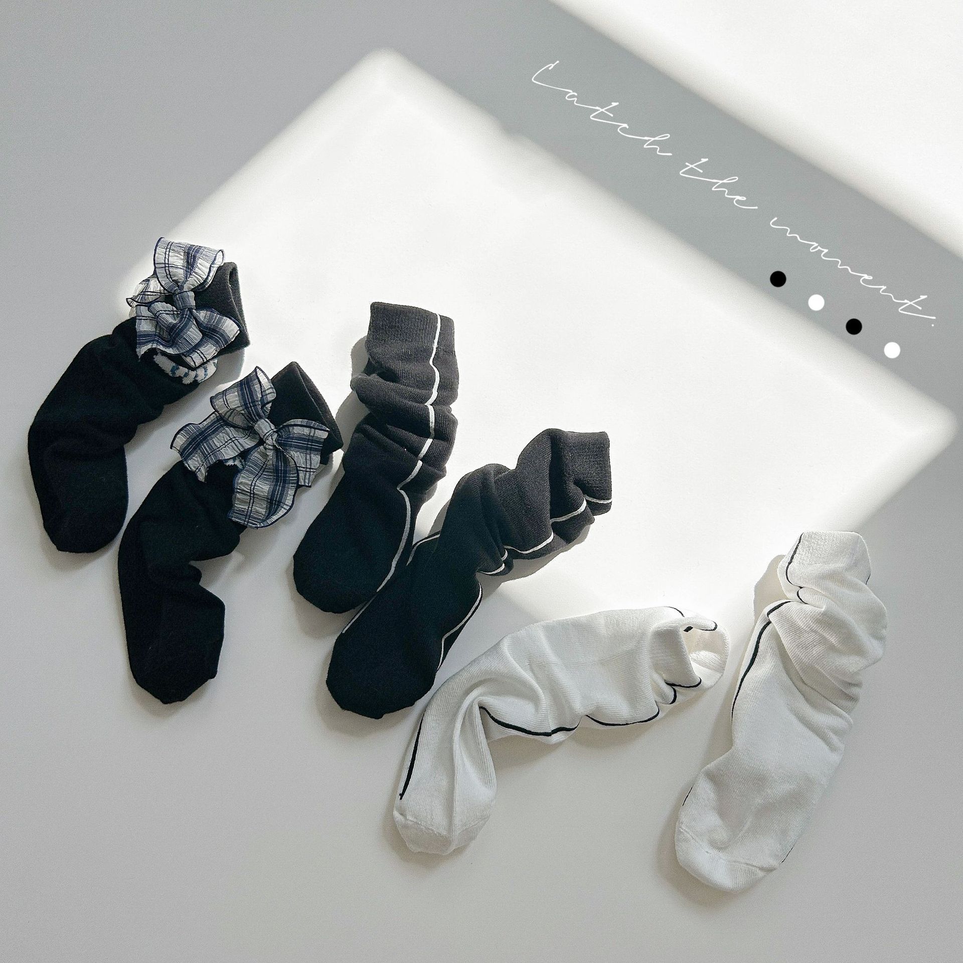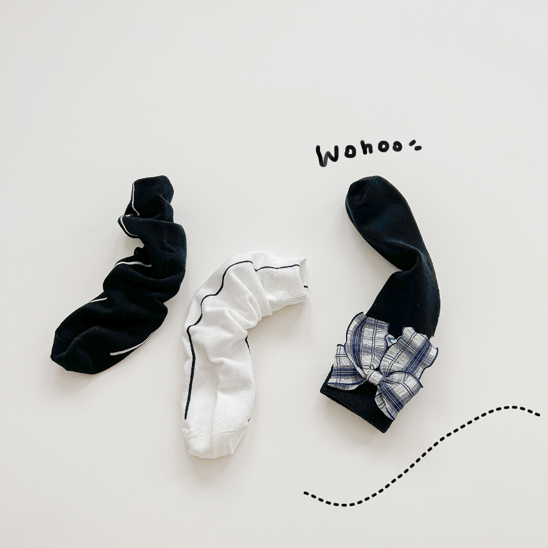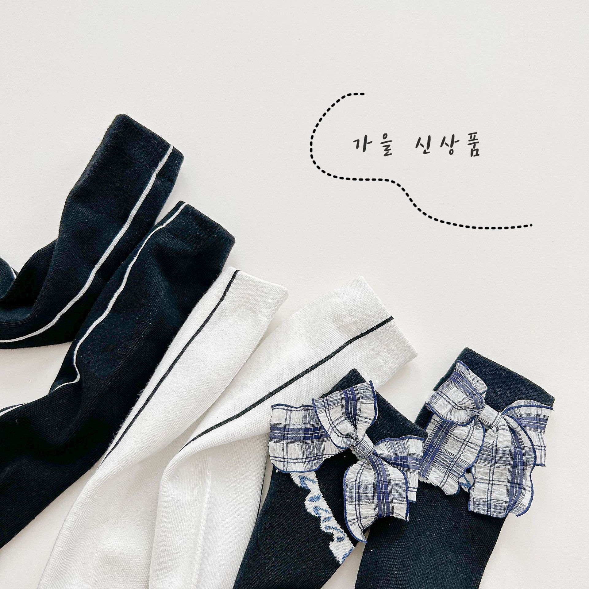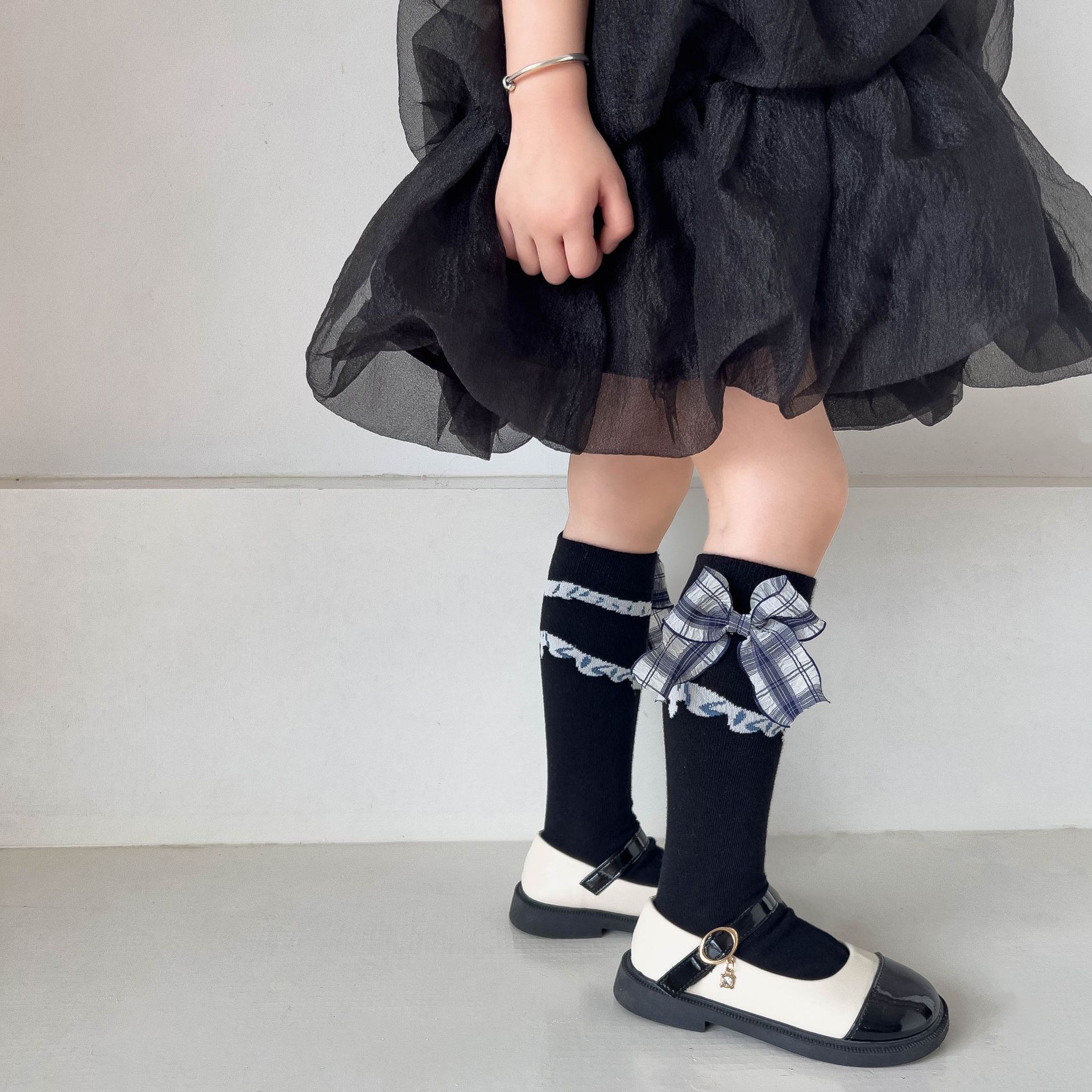 孙姑娘儿童长筒袜春秋韩版蝴蝶结女童小腿袜个性简约条纹袜子